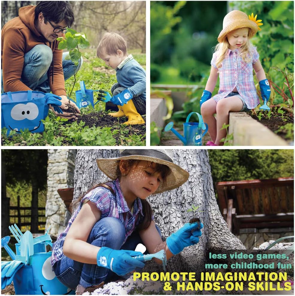 SICUREZZA – La sicurezza è la massima priorità. Ecco perché realizziamo questo set da giardino per bambini con il materiale innocuo e più durevole. I bordi degli attrezzi da giardino per bambini sono arrotondati e privi di sbavature per evitare che i bambini si feriscano IMPARA GIOCANDO - I bambini adorano esplorare la natura. Fango, semi, germogli, insetti e fiori fanno tutti parte dell'apprendimento quando possono giocare con te. Amano aiutare e imparare. Il tuo bambino adorerà dare una mano con questi simpatici attrezzi da giardinaggio per bambini, perfetti per le mani dei più piccoli. APPOSITAMENTE PROGETTATO PER I NOSTRI GIARDINIERI DI RIFIUTI - Tutti gli attrezzi da giardinaggio per bambini sono a misura di bambino e perfetti per le mani dei bambini piccoli. Le teste sono in vero metallo, sono molto robuste e fanno divertire i bambini. Altro che semplice giardinaggio! Porta questo set di attrezzi da giardino per bambini in spiaggia, gioca nella sabbia, prepara dolci con la sabbia e costruisci castelli di sabbia OTTIMI REGALI DA GIARDINO PER BAMBINI - Se stai cercando un regalo per bambini, non cercare oltre questo set da giardino per bambini. Viene fornito in una confezione regalo. Regali di giardinaggio perfetti per i bambini per Natale, compleanni e come regalo per premi e incoraggiamento. CONSIGLIATO - Supervisione di un adulto, consigliata dai 3 anni in su. Sosteniamo il nostro set di qualità premium. Qualunque problema tu abbia, puoi contattarci direttamente, ti aiuteremo a risolverlo