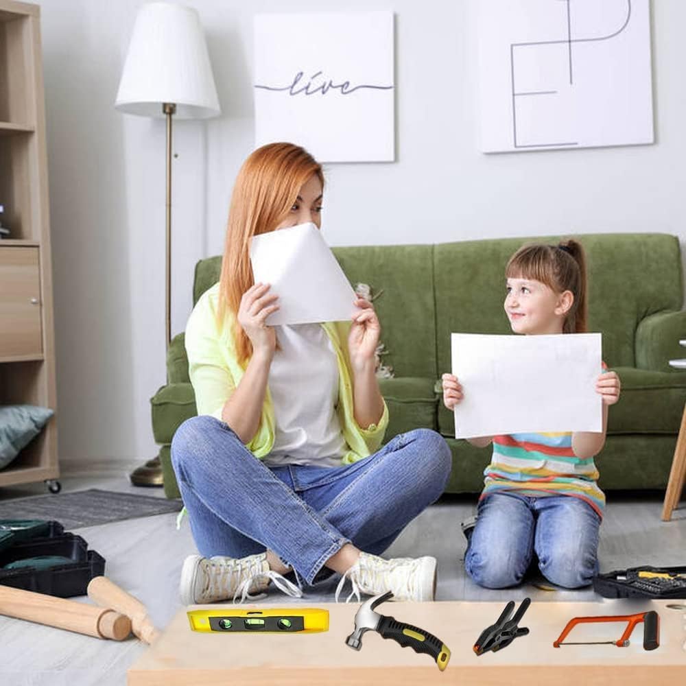 Kit completo di strumenti: questo set di attrezzi per bambini da 38 pezzi contiene tutti gli strumenti essenziali per il fai da te e lavori come sega a mano, martello, cacciavite, metro pieghevole, livella, morsetti e altro ancora. Robusta borsa per utensili: la robusta borsa con maniglia per il trasporto consente di riporre e trasportare tutti gli strumenti in modo sicuro. Grembiule da falegname regolabile: il grembiule regolabile con comode tasche mantiene tutti gli strumenti a portata di mano. Dotazione di sicurezza: occhiali protettivi e guanti da lavoro sono inclusi per la protezione degli occhi. Giocattolo educativo: questo set promuove abilità artigianali, creatività e capacità di risoluzione dei problemi nei bambini in modo giocoso.