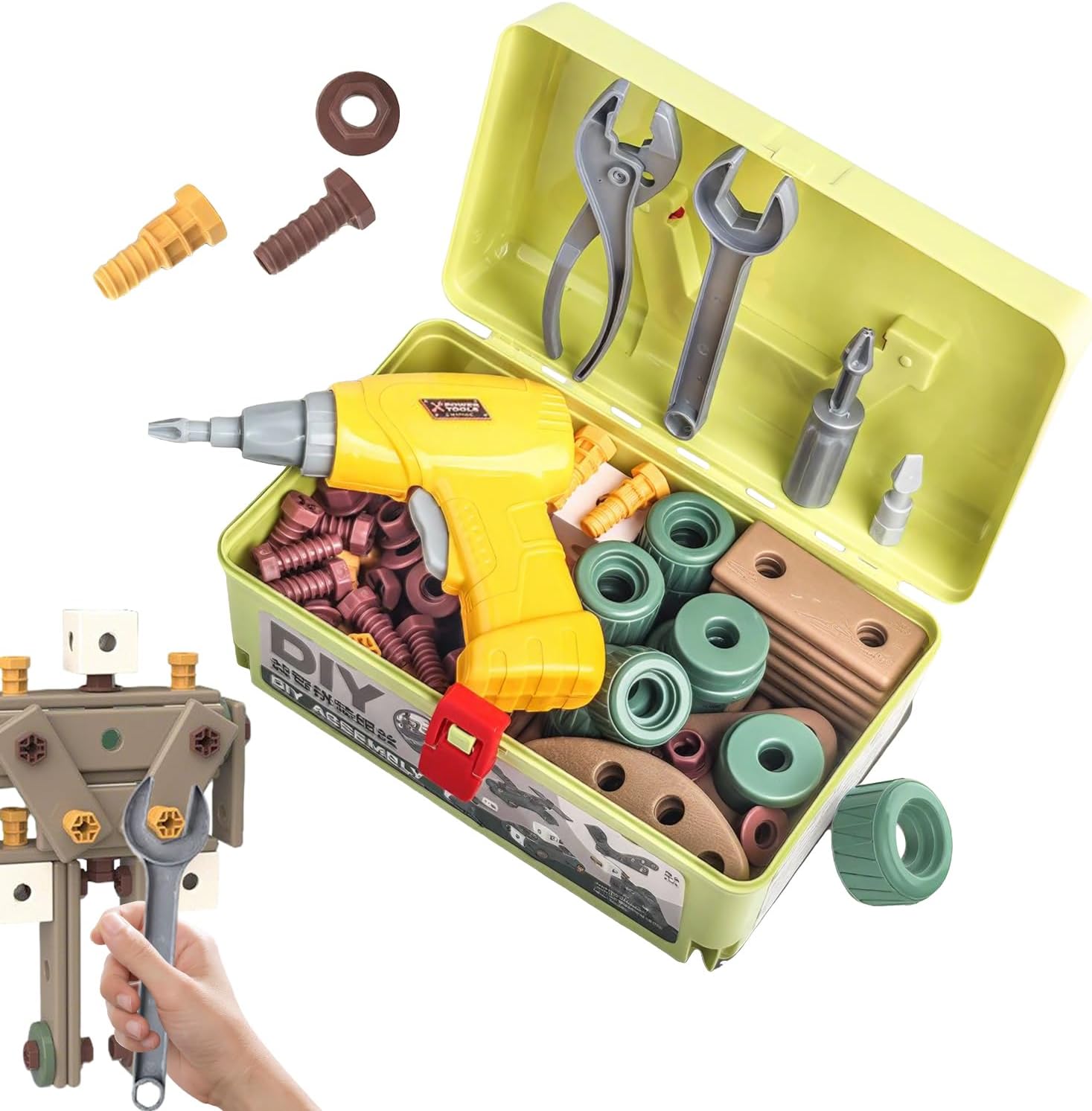 Aumento della destrezza della mano: questo set di attrezzi per bambini favorisce la forza della mano attraverso movimenti di rotazione su dadi e viti, supporta allo stesso tempo giocosamente l'esercizio delle abilità motorie fini e lo sviluppo della coordinazione occhio-mano Gioco creativo: ispira esplorazione e immaginazione attraverso il design ricco di dettagli. Questo set completo promuove le esperienze di successo e sviluppa abilità con molti accessori. Un regalo con doppio valore per la gioia e la crescita. AMPIO SCENARI DI UTILIZZO : con un design modulare e intersano, il kit di strumenti per bambini supporta il gioco creativo in diversi livelli di sviluppo. È perfettamente adatto per l'uso a casa, all'aperto o in classe e incoraggia i giochi collaborativi e il lavoro di squadra Set di attrezzi sicuro: i materiali resistenti agli urti e flessibili garantiscono un utilizzo duraturo, con superfici lisce e bordi arrotondati per un'esperienza di costruzione sicura per i bambini durante la costruzione fantasiosa. Promozione creativa: supporta l'aumento della capacità di pensiero logico e la stimolazione creativa mediante montaggi di gioco realistici con componenti diversi per ore di costruzione ricche di idee