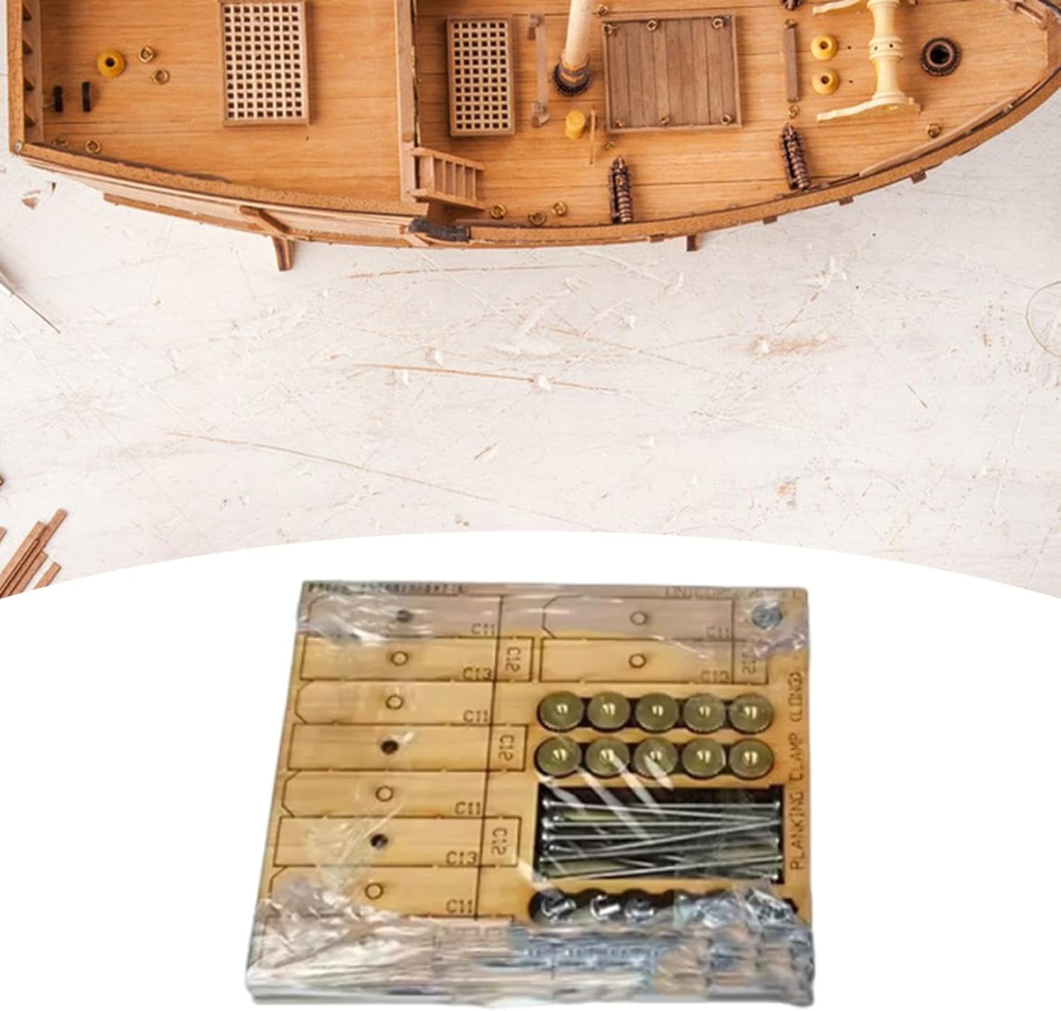 Funzionamento rapido ed efficiente: ogni morsetto è dotato di un dado ad alette in ottone per un serraggio e un allentamento rapidi. da utilizzare, consente un lavoro efficiente Design a lunga distanza: vite M2x40mm, che passa facilmente attraverso le nervature, consente di applicare la forza di serraggio in profondità e fissare le assi in aree centrali difficili da raggiungere Compatto e: i morsetti per fasciame del modello di nave sono realizzati in em e metallo e sono adatti per l'uso a lungo termine in progetti di costruzione di modelli dettagliati. Strumento indispensabile per la costruzione di modelli navali: sviluppato appositamente per modelli con centine piene. Questi morsetti per modellismo in legno forniscono la pressione salda e uniforme necessaria per fissare saldamente le assi dello scafo in legno al telaio della nave. Evitano la deformazione dello scafo e garantiscono una finitura perfettamente liscia e precisa. Kit di montaggio fai da te: deve essere assemblato. Riceverai tutte le parti necessarie per costruire un set completo di 10 morsetti per tavolati, inclusi pezzi di legno, viti M2x40mm, dadi zigrinati in ottone e tutti i raccordi necessari.