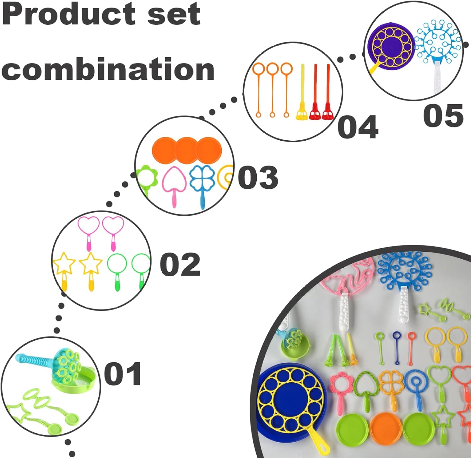 Buona tenacità: il set di bacchette per bolle è realizzato in resina con colori vivaci, non sbiadisce facilmente e può essere utilizzato più volte..Ed è abbastanza leggero da poter essere portato ovunque..Ideale per bambini sopra i 3 anni e adulti. 3 modi di giocare: soffia sul bastoncino con le bolle/scuoti il bastoncino con le bolle/corri tenendo il bastoncino con le bolle..Giocare con i bastoncini di bolle può incoraggiare i tuoi bambini a respirare fresca, correre sull'ampio campo e godersi il divertimento di creare un mondo di bolle. Una fantastica attività all'aperto: le grandi bacchette a bolle creano grandi bolle è molto divertente e aggiunge un tocco eccezionale a tante attività diverse come matrimoni, compleanni o giornate in famiglia..Divertiti di più con le bolle. Fai più amici: il set di aste per bolle di sapone è un giocattolo che aiuta i bambini a integrarsi rapidamente nel gruppo e può anche migliorare il rapporto tra genitori e figli. Varie dimensioni e forme: il set di bolle di sapone per bambini contiene diverse forme, fiori, cuori, stelle ecc., design perfetto, colori ricchi e motivi diversi, divertimento infinito per te e i tuoi bambini.