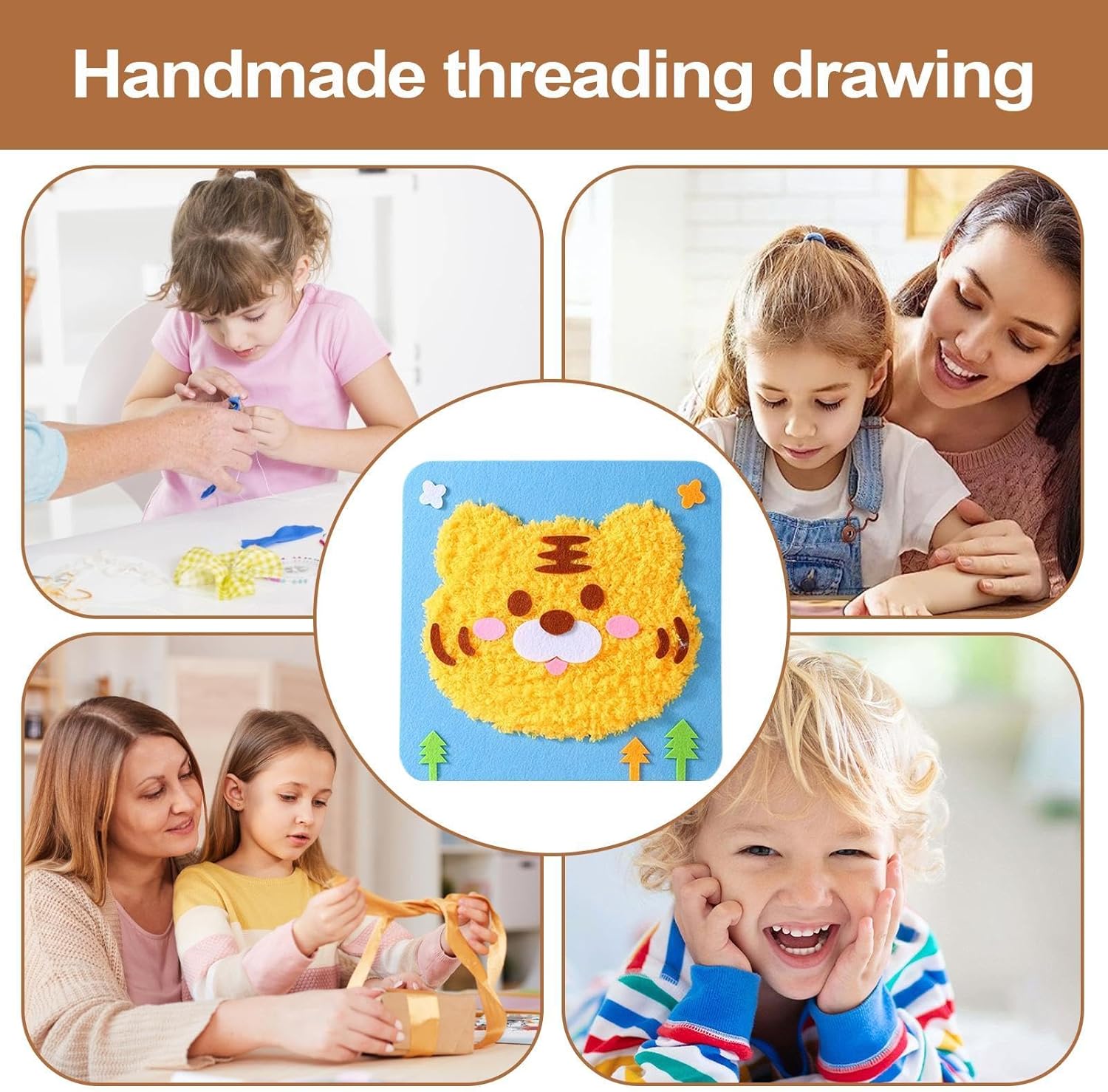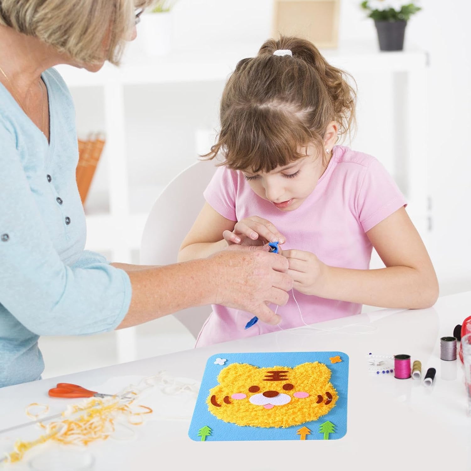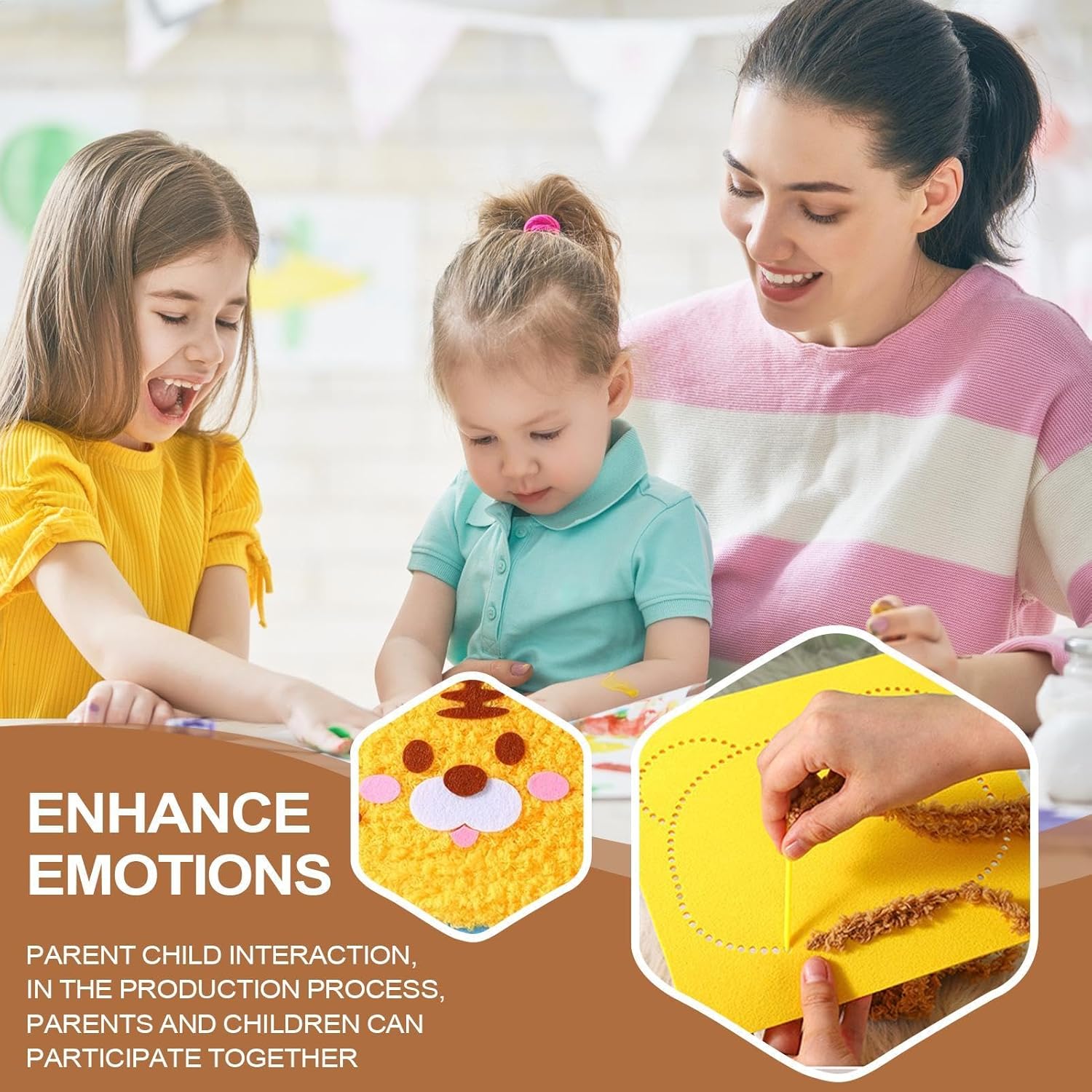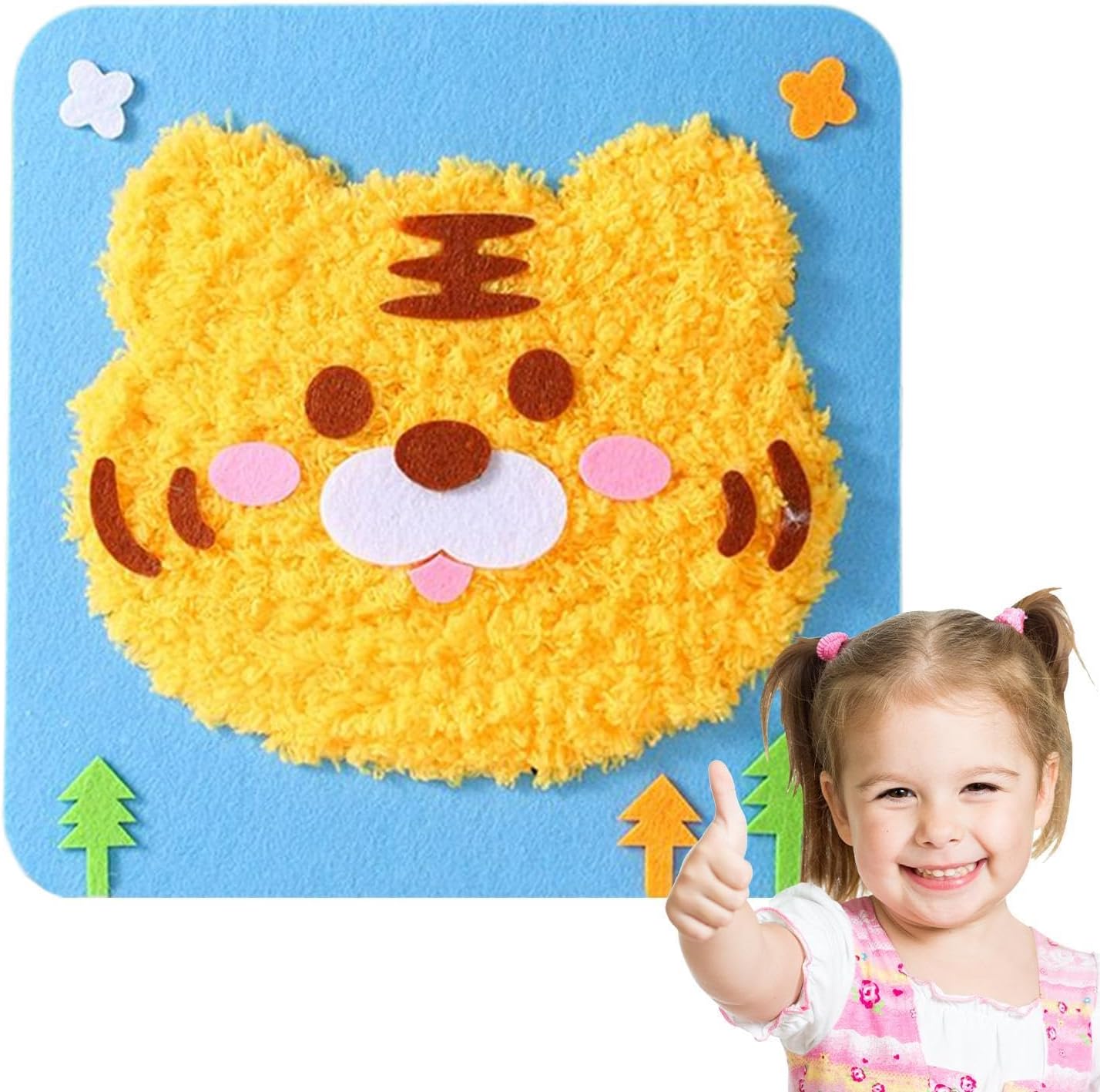 Migliora la creatività: con tutti i componenti con tecnologia autoadesiva, i bambini possono creare senza sforzo semplicemente strappando e incollando. Non c'è bisogno di forbici o strumenti: essere facilmente coinvolto in attività di creazione con la comodità di materiali di fustea rapidi e ordinati Eccitazione scintilla: identificare facilmente i materiali e i colori vibranti rendono il ricamo piacevole per i bambini, ispirandoli a esplorare ed esprimersi attraverso l'arte Scintilla gioiosa giocosità: scegli tra sei stili di animali da cartoni animati - Monkey, Tiger, Deer, Elephant, Bear e Duck - ogni design che esplode con fascino giocoso, un grande arredamento vivace o un delizioso miglioramento della stanza di ogni bambino Foster Connection: incoraggia la creazione collaborativa, promuovendo legami più forti impegnandosi nella creatività pratica insieme, migliorando la comunicazione e le connessioni emotive tra genitori e bambini mentre sviluppano concentrazione e pazienza Aumenta la creatività: usando tessuto non tessuto, lana e pp, questo set di ricami protegge un ambiente artistico sano ed ecologico per i bambini da vivere