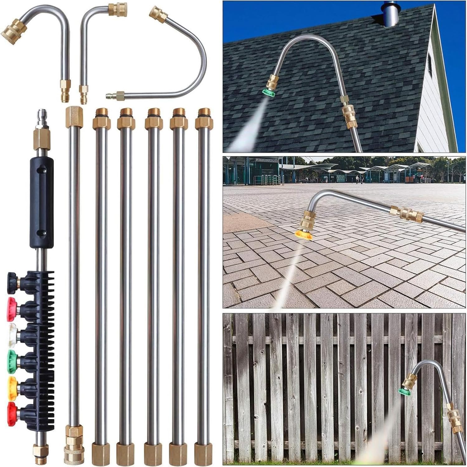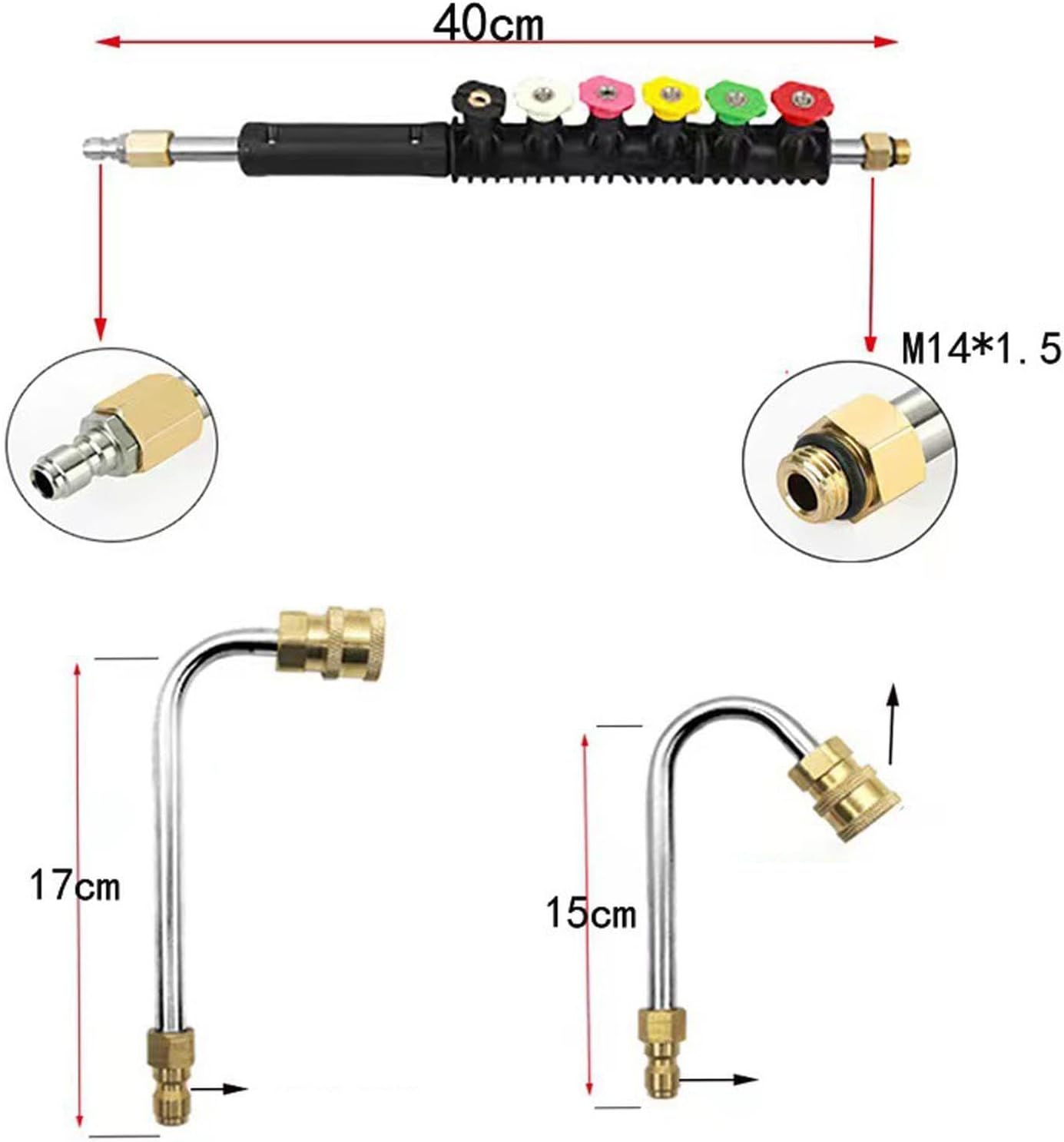 [4 tipi di aste di prolunga]: viene fornito con 4 tipi di aste di prolunga per idropulitrice, tra cui 30 gradi, 90 gradi, grande forma a U e aste dritte, facili da usare, installare e rimuovere.