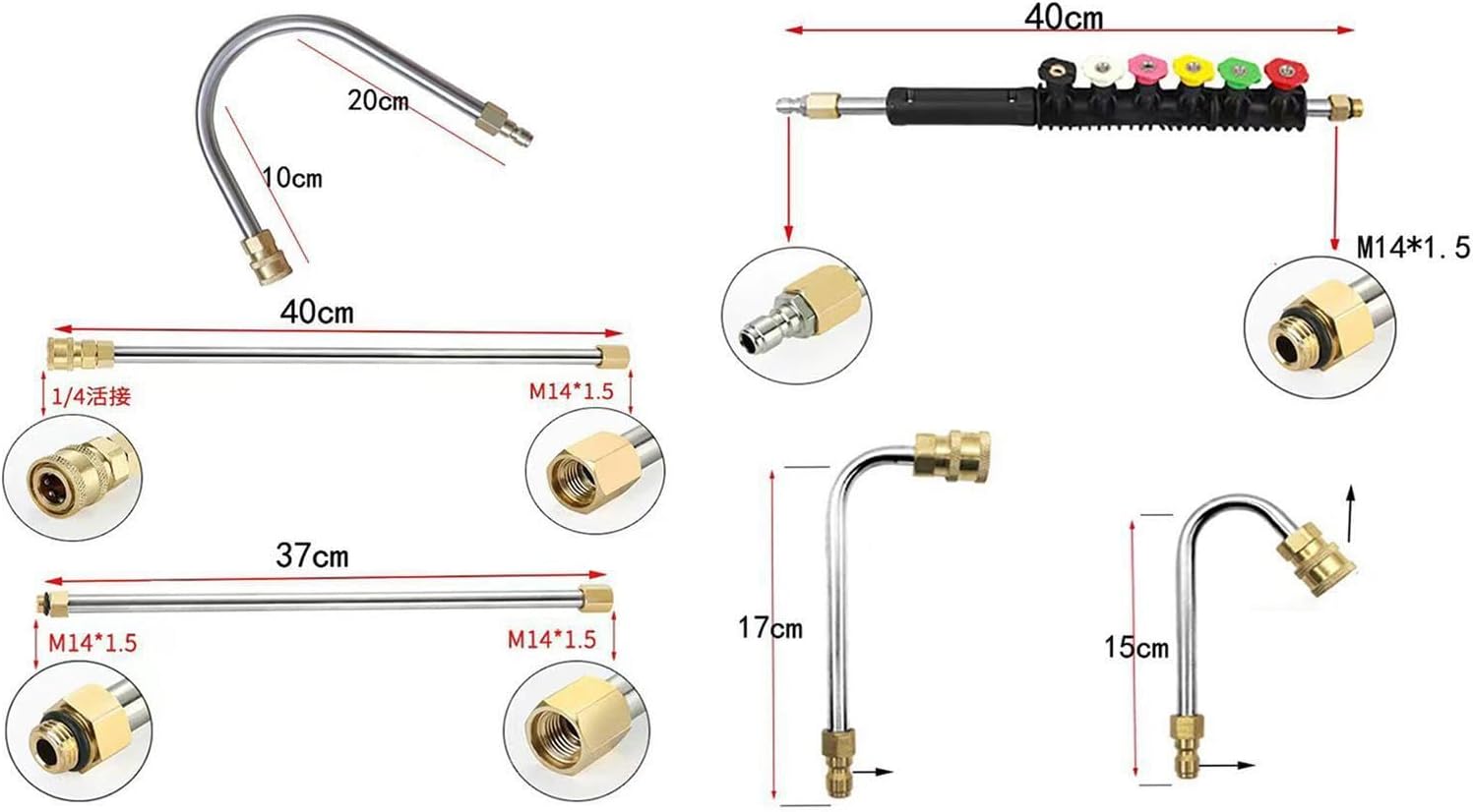 [Materiale di qualità]: il set di barre di prolunga per idropulitrice è realizzato in ottone massiccio e acciaio inossidabile. Pressione massima di esercizio: 4000 PSI.