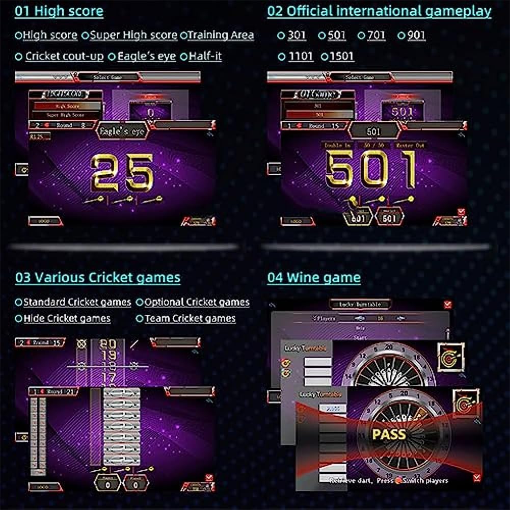 Versatile esperienza di gioco: dispone di un ampio display LCD con 26 giochi di freccette coinvolgenti, che supportano più lingue per un appeal globale. Offre opzioni di connettività tra cui rete, Internet e WiFi per un'esperienza di gioco interattiva. Design high-tech: la tavola da 47 cm utilizza materiali avanzati per una maggiore flessibilità, riducendo al minimo i rimbalzi delle freccette. L'alta sensibilità garantisce un punteggio accurato con colori durevoli e resistenti allo sbiadimento per un uso duraturo. Installazione semplice: progettato per una facile installazione con fori per chiodi rinforzati, consentendo un rapido montaggio a parete o posizionamento in qualsiasi posizione preferita senza problemi. Ampia gamma di usi: ideale per vari ambienti come case, bar, ristoranti e club. Favorisce la coordinazione occhio-mano e la sportività, rendendolo una grande attività per gruppi di tutte le età. Intrattenimento di gruppo: perfetto per feste o serate di gioco, può ospitare fino a 4 giocatori. Adatto a tutti i livelli di abilità, dai principianti ai professionisti, garantendo un gioco divertente e competitivo per tutti.