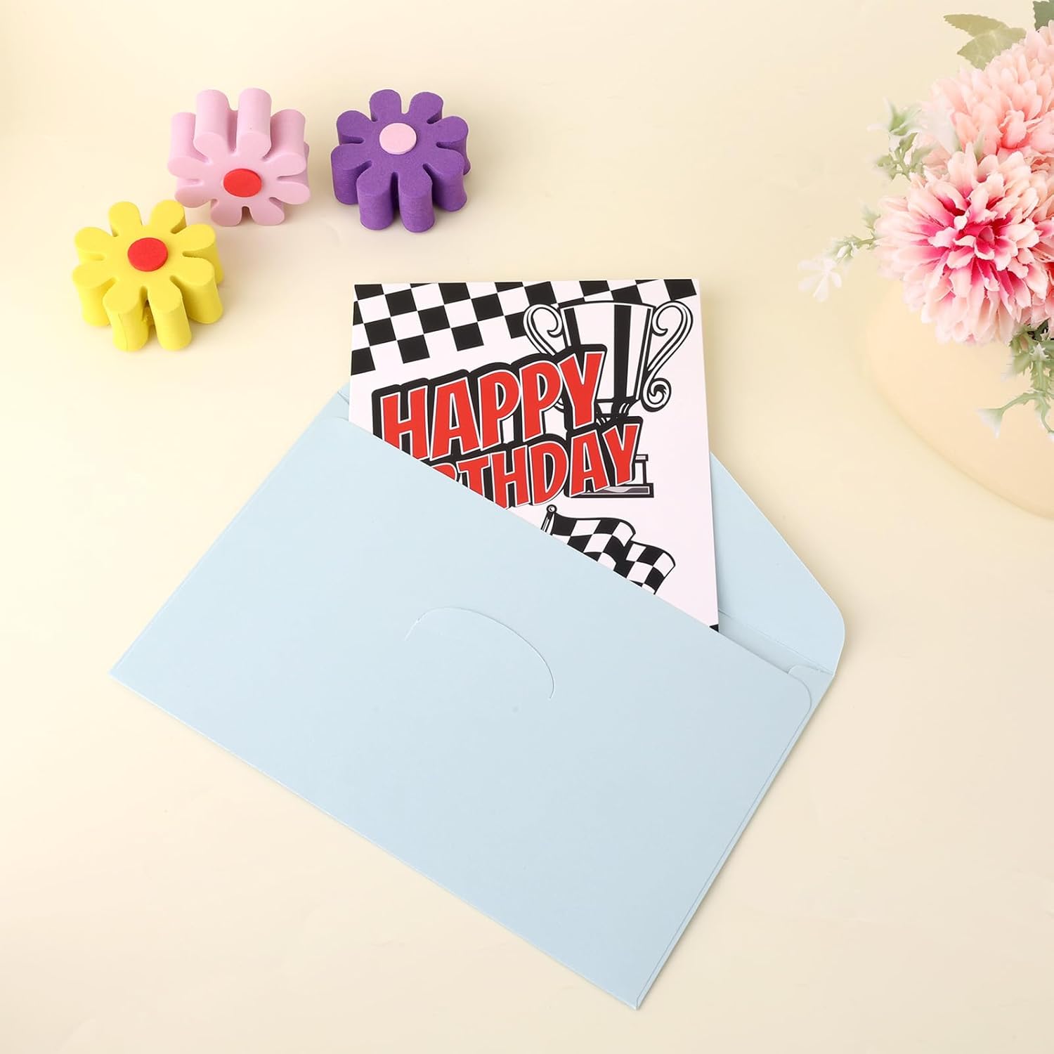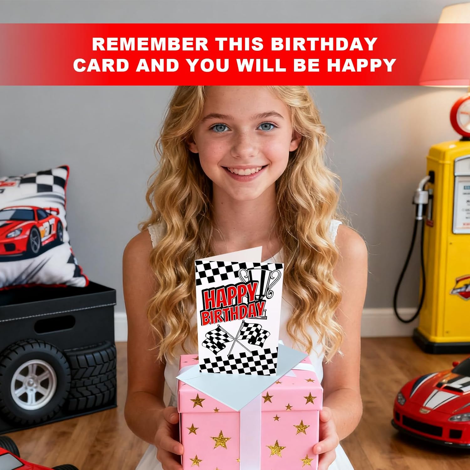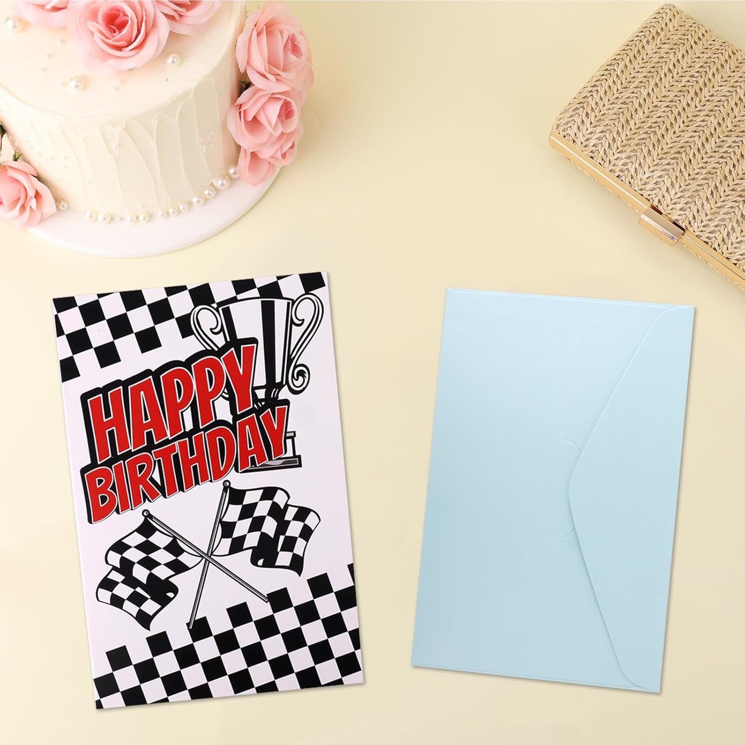 Contenuto della confezione: ogni set include 1 biglietto d'auguri per corse automobilistiche, 1 busta abbinata e 1 adesivo sigillante, soddisfacendo pienamente tutte le esigenze delle benedizioni di compleanno. Materiale eccellente: realizzato in materiale cartaceo di alta qualità, il set di biglietti di auguri di buon compleanno a tema corse è spesso e resistente alle pieghe. Inoltre, la busta abbinata è affidabile e può proteggere i biglietti d'auguri da eventuali danni. Ampia applicazione: progettato appositamente per gli appassionati di corse e i compleanni dei bambini, questo fantastico biglietto d'auguri è adatto per feste per ragazzi, carte regalo o collezioni, esprimendo perfettamente l'amore per la velocità e la passione. Design speciale: ispirato alla cultura delle corse, il biglietto di auguri di compleanno combina elementi a scacchiera in bianco e nero, trofeo a strisce e bandiera a scacchi, creando un'atmosfera dinamica e competitiva che è distinta ma elegante. Facile da usare: design di dimensioni standard (la busta abbinata alla carta Happy Birthday Race misura circa 21,5 x 14 cm), facile da inviare e trasportare, ideale per compleanni, celebrazioni o feste a sorpresa.