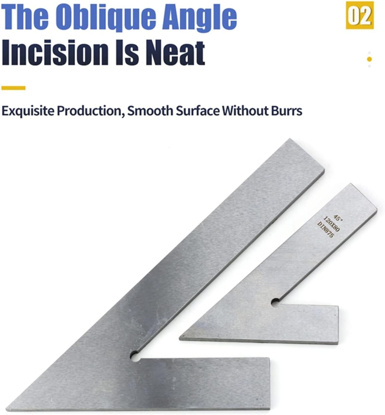 Materiale del prodotto: acciaio al carbonio Materiali: cromatura in acciaio al carbonio Costruzione di precisione: cromatura finemente lucidata, durevole Design ad angolo obliquo a 45°: misurazione professionale, angolo preciso Produzione: incisione pulita e superficie liscia senza sbavature