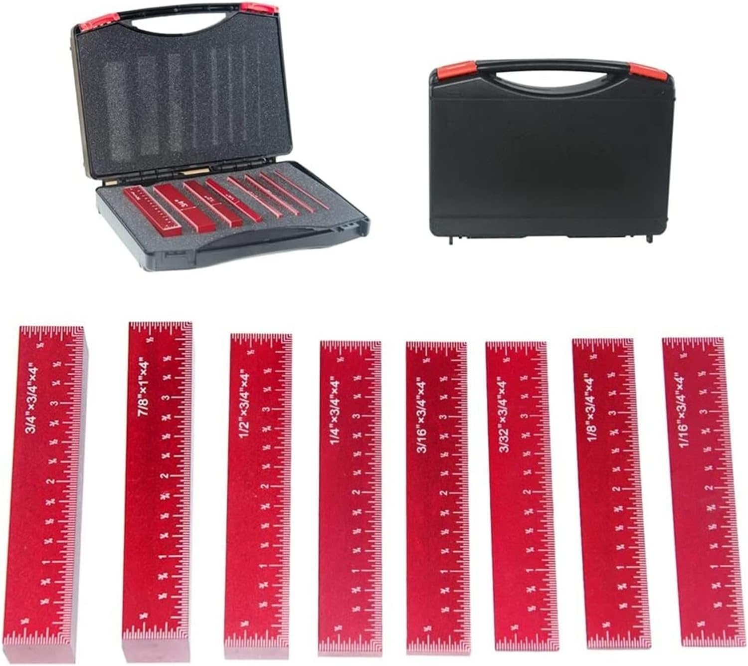 DURABLE8 Pcs Blocks Solida struttura in alluminio anodizzato nero per proteggere meglio le frese e le seghe. FACILE DA TRASPORTARE Questo set di indicatori di altezza per blocchi di installazione viene fornito con una custodia in plastica per un facile utilizzo e conservazione. Custodia aderente, quindi sarà più protetta durante il trasporto. I dispositivi di misurazione dell'altezza in 5 pezzi di diverse dimensioni e i calibri dei fori in 2 pezzi possono facilmente impostare l'altezza della recinzione, delle punte delle lame e di altre frese in base alle esigenze, il che è più veloce e preciso rispetto all'utilizzo di un righello combinato. UTILIZZO AMPIO delle barre di configurazione per un'ampia variazione o dimensioni, oppure utilizzate da sole, lavorate e misurate rapidamente.