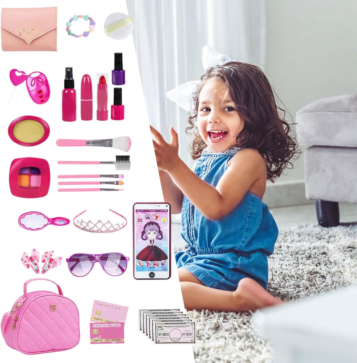 Borsa da gioco per giovani: permette ai tuoi di entrare nel mondo immaginario con la nostra borsa da gioco per bambine. Completo di una gamma di accessori tra cui borse alla moda, telefono cellulare, chiavi della macchina, occhiali da sole, carte di credito e kit per il trucco, stimola la loro creatività e favorisce i giochi fantasiosi. Gioco di ruolo: con questa borsa da gioco per bambine lasciate che il vostro bambino godrà un look e una sensazione realistici senza il disordine. Incoraggia i giochi fantasiosi e lascia libero sfogo alla loro creatività con questo accessorio adatto a chi cattura il piacere della raffinatezza. Immaginazione infantile: i suoni e le luci realistiche del telefono rendono il gioco di ruolo più divertente, ispirando le bambine a liberare la loro creatività e abilità sociali. Materiale di qualità sicuro: la cerniera in metallo liscia garantisce un facile utilizzo e trasporto, la borsa da gioco per bambine è progettata con un'eccellente durata. Il suo design spazioso consente di acquistare gli accessori inclusi ed è un'ottima aggiunta al guardaroba della tua bambina Regalo sorprendente: stimola l'immaginazione e migliora la destrezza con questa borsa da gioco, un accessorio versatile per compleanni, vacanze e celebrazioni. Appositamente progettato per ragazze dai 3 agli 8 anni, è un must per qualsiasi guardaroba giocoso.