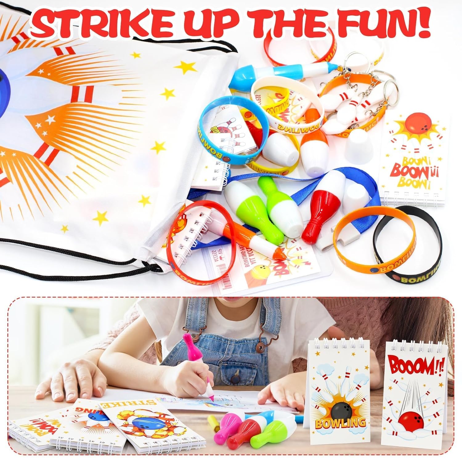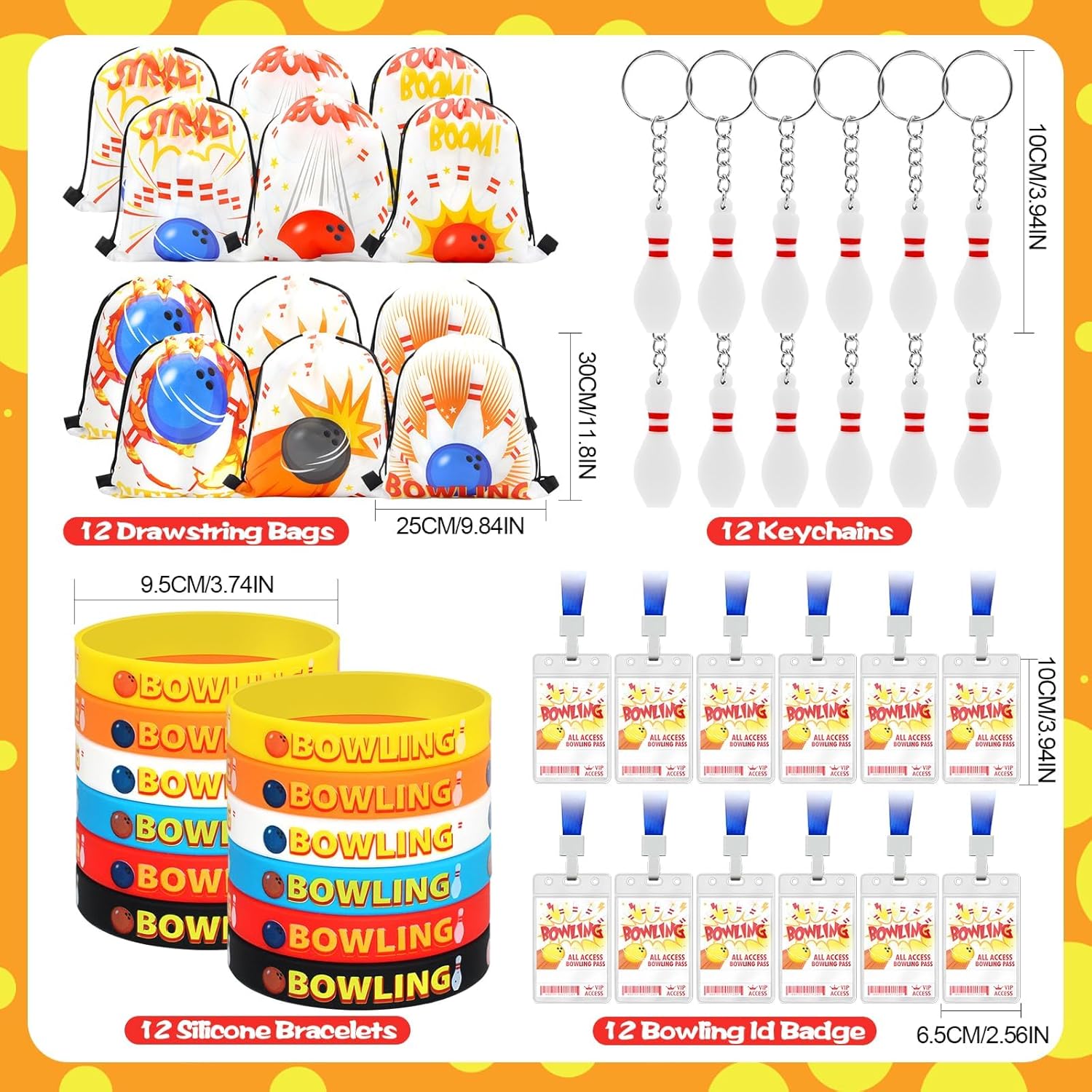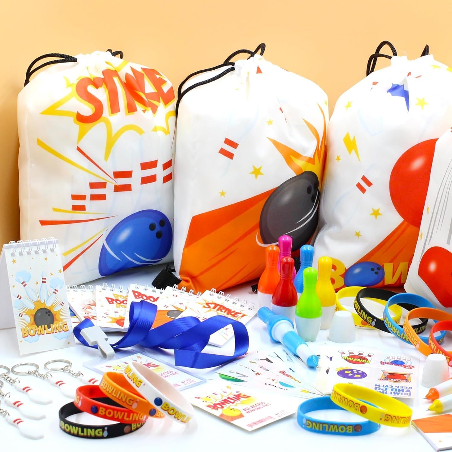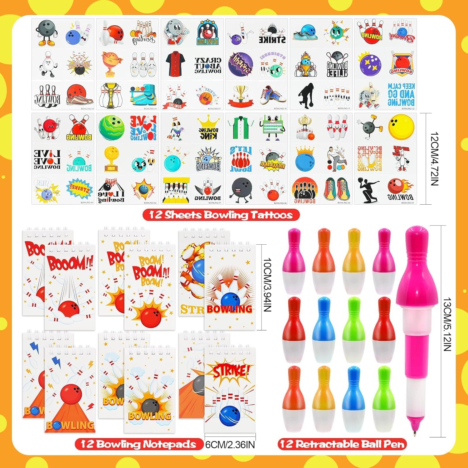 🎳 Set da bowling da 84 pezzi: iniziamo a lanciare! Ottieni uno sciopero con questo set da festa tutto in uno in stile bowling! Include 12 penne da bowling, 12 targhette con il nome, 12 borse da palestra, 12 quaderni a tema, 12 braccialetti in silicone, 12 portachiavi da bowling e 12 fogli di tatuaggi pretagliati (72 disegni!). 🎯 Pieno di divertimento al bowling: dalle fantastiche penne a sfera ai tatuaggi sorprendenti: ogni parte porta gioia. I bambini possono indossarli, scambiarli, collezionarli o scriverci sopra: il set perfetto per i piccoli appassionati di bowling! 💪 Sicuro, durevole e adatto ai bambini – Realizzato con materiali atossici adatti ai bambini. Morbidi braccialetti in silicone, tatuaggi facili da staccare e borse da palestra leggere rendono questo set un piacere senza stress. Consigliato dai 3 anni in su e soddisfa gli standard di sicurezza statunitensi. 🎁 Perfetto per compleanni di bowling e altro - Ideale come bomboniere, premi in classe, sorprese durante i pigiama party o per feste di bowling. Perfetto per ragazzi, ragazze e tutti i piccoli fan a cui piace dire "STRIKE!" chiamata. 💡 Nessuna preparazione, divertimento immediato: tutti gli articoli sono confezionati insieme e pronti per essere inseriti nelle tue borse da festa! Basta aprirlo e deliziate subito bambini e genitori. Risparmia tempo e organizza la festa più bella sul treno!