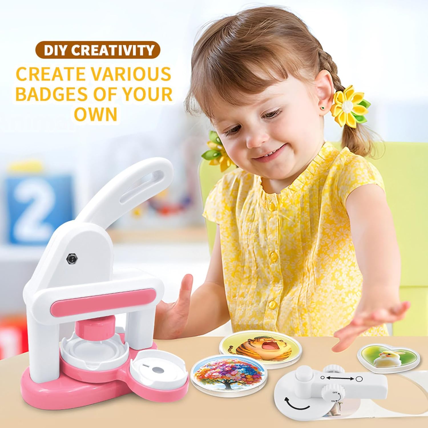 Ideale per bambini e appassionati di artigianato, questo strumento educativo migliora la creatività sviluppando abilità motorie attraverso le personalizzazioni manuali sui badge Crea fino a 48 distintivi unici con questo set Button Maker Machine, con struttura in ABS e bordi arrotondati sicuri per i bambini per il fai da te Per progetti scolastici, regali di festa come ornamenti di Natale, forniture per feste di compleanno o personalizzare con foto, disegni e adesivi decorativi Il meccanismo di stampa integrato con taglierina circolare da 55 mm garantisce il taglio del modello e il montaggio sicuro del badge utilizzando modelli di design e componenti riutilizzabili La confezione regalo portatile include tutti gli accessori Badge Maker per bambini, consentendo un'espressione artistica immediata senza configurazioni o strumenti complessi