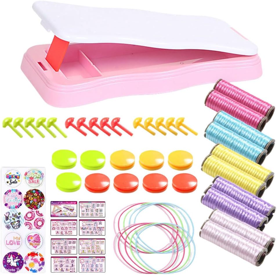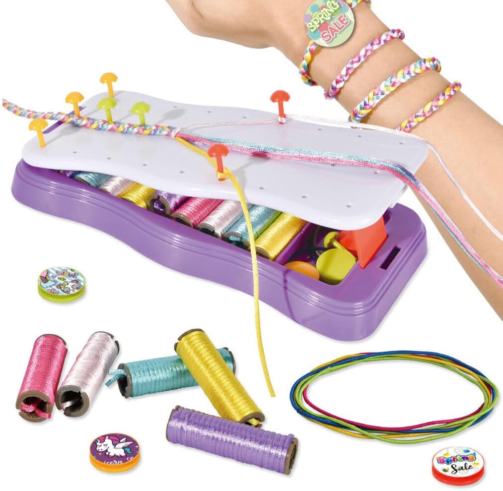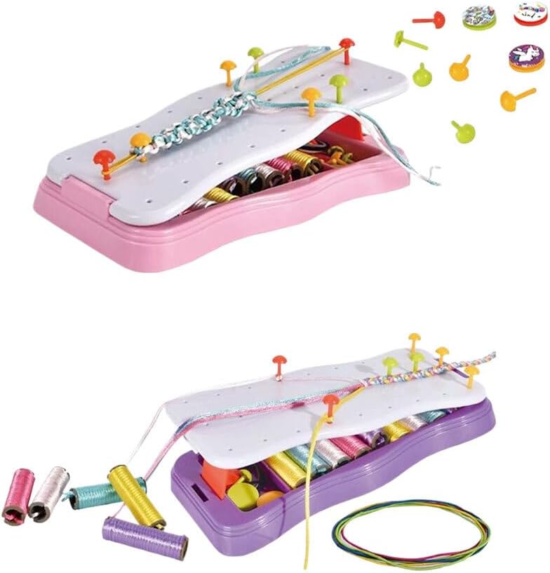 Set completo di braccialetti per tessitura: tutto ciò di cui hai bisogno per realizzare braccialetti unici in un kit portatile. per ragazze e principianti! Set di braccialetti fai-da-te facile da usare: manipola lo stile che desideri con facilità. per passare il tempo o lavorare in movimento Kit compatto per realizzare braccialetti: leggero e portatile per realizzare braccialetti ovunque Varietà di opzioni: scegli tra 2 colori e goditi i colori degli accessori casuali per una creatività infinita Divertente kit per intrecciare corde a mano: include un tessitore per braccialetti, perni di posizionamento, corde per intrecciare, elastici, bottoni e adesivi. Un'idea regalo!