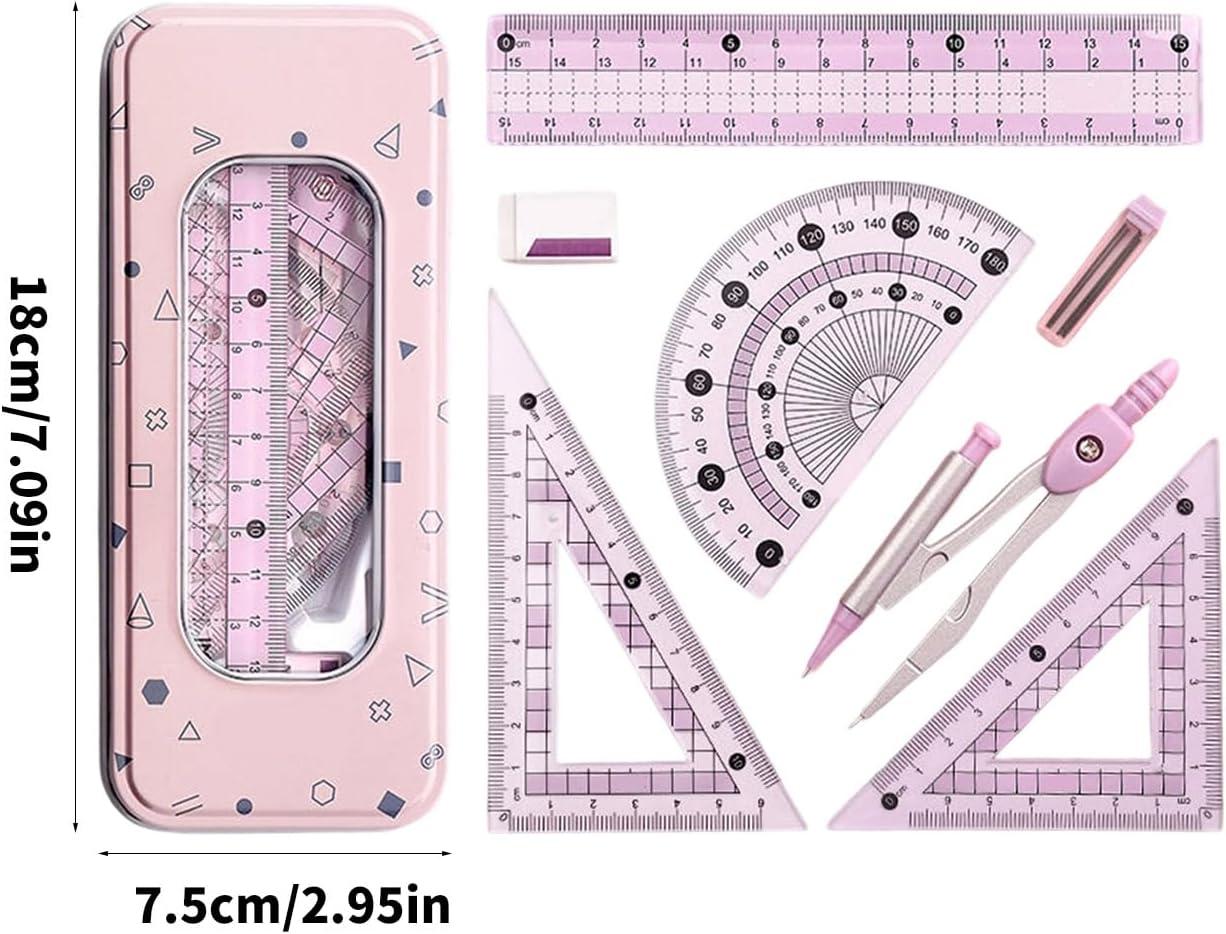 Il set portatile viene fornito con una scatola di immagazzinaggio dedicata, che rende facile organizzare tutti gli strumenti ed evitare perdite. Particolarmente adatto per uomini d'affari che viaggiano spesso o hanno bisogno di portare articoli di cancelleria, assicurando che l'efficienza del lavoro non sia compromessa Il corpo principale ABS Con dimensioni portatili di 18 x 7,5 cm, può essere facilmente posizionato in un astuccio, rendendolo facile da trasportare per gli studenti senza alcun peso. Non si danneggia facilmente Combinazione multifunzionale: include più righello e strumento di disegno, un set che soddisfa varie esigenze. Risolve il problema che un singolo strumento non può gestire compiti complessi, adatto per l'uso in varie occasioni come scuole, uffici e compiti a casa Strumento di disegno accurato: le bussole in lega assicurano che ogni cerchio disegnato sia preciso e privo di errori. Risolve il problema della deformazione delle normali bussole, adatto per studenti e designer professionisti che hanno bisogno di disegno fine Esperienze di presa confortevoli: l'impugnatura ergonomica previene l'affaticamento anche dopo un uso prolungato. Fornire un'esperienza utente più confortevole e migliorare l'efficienza del lavoro per gli utenti che hanno bisogno di dedicare molto tempo al lavoro di disegno