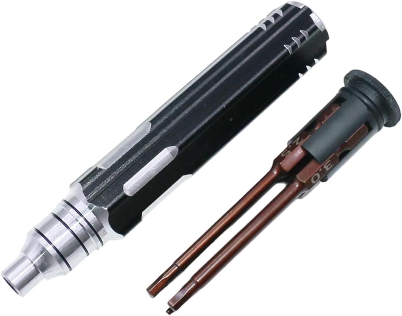 Progettato specificamente per hobbisti, collezionisti in miniatura e costruttori di modelli di telecomandi che richiedono un ottimo strumento per una delicata regolazione della vite Gli alberi in acciaio garantiscono una maggiore resistenza all'usura e protezioni contro la corrosione, abbinati al manico ergonomico in lega di alluminio per operazioni facili durante l'uso prolungato Progettato con punte e impugnatura antiscivolo, questo kit di utensili per modelli migliora l'efficienza operativa mantenendo la portabilità per la manutenzione dei modelli in movimento Soddisfa complesse attività di assemblaggio in postazioni di lavoro artigianali, eventi all'aperto o configurazioni di competizioni con questo kit di attrezzi tascabile compagno Il nostro set di cacciaviti 4 in 1 con punte da 1,5, 2,0, 2,5 e 3 mm offre precisione multiuso per kit di modelli e assemblaggio di statuette, eliminando la necessità di più strumenti