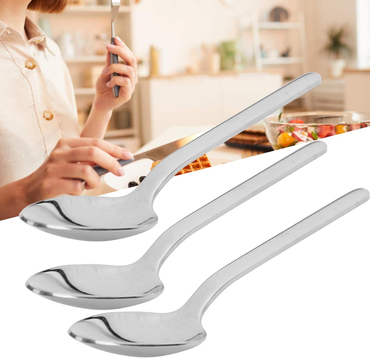 [Materiale di qualità premium] Realizzato in acciaio inossidabile 316 di alta qualità, durevole, a basse ecologie e ecologiche, garantendo deformazione o sbiadimento per un uso duraturo. [Design liscio e sicuro] La superficie lucidata a specchio garantisce un bordo liscio senza punti ruvidi, rendendolo sicuro da usare senza graffiare la bocca. [Utilizzo versatile] Un design classico adatto a qualsiasi stile di cucina, per l'uso quotidiano, feste, campeggio, ristoranti o hotel, migliorando la tua esperienza culinaria. [Elegante look moderno] Il design moderno semplice e classico abbina senza sforzo le tue stoviglie esistenti, aggiungendo un tocco di raffinatezza al tuo tavolo da pranzo. [Afferra comoda] Con una forma elegante e senza slittamento e una bellissima maniglia a bordo arrotondato, questi cucchiai offrono una presa comoda per divertenti esperienze culinarie.
