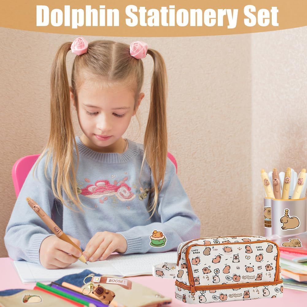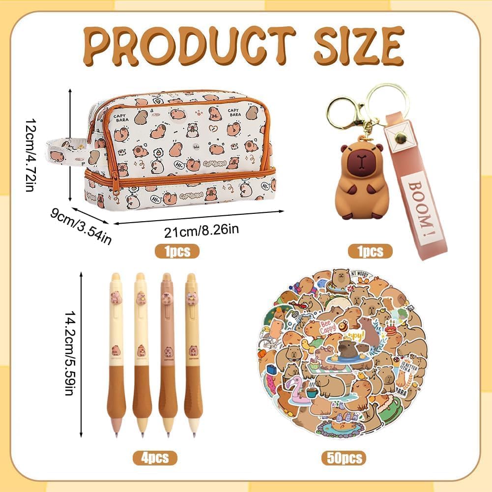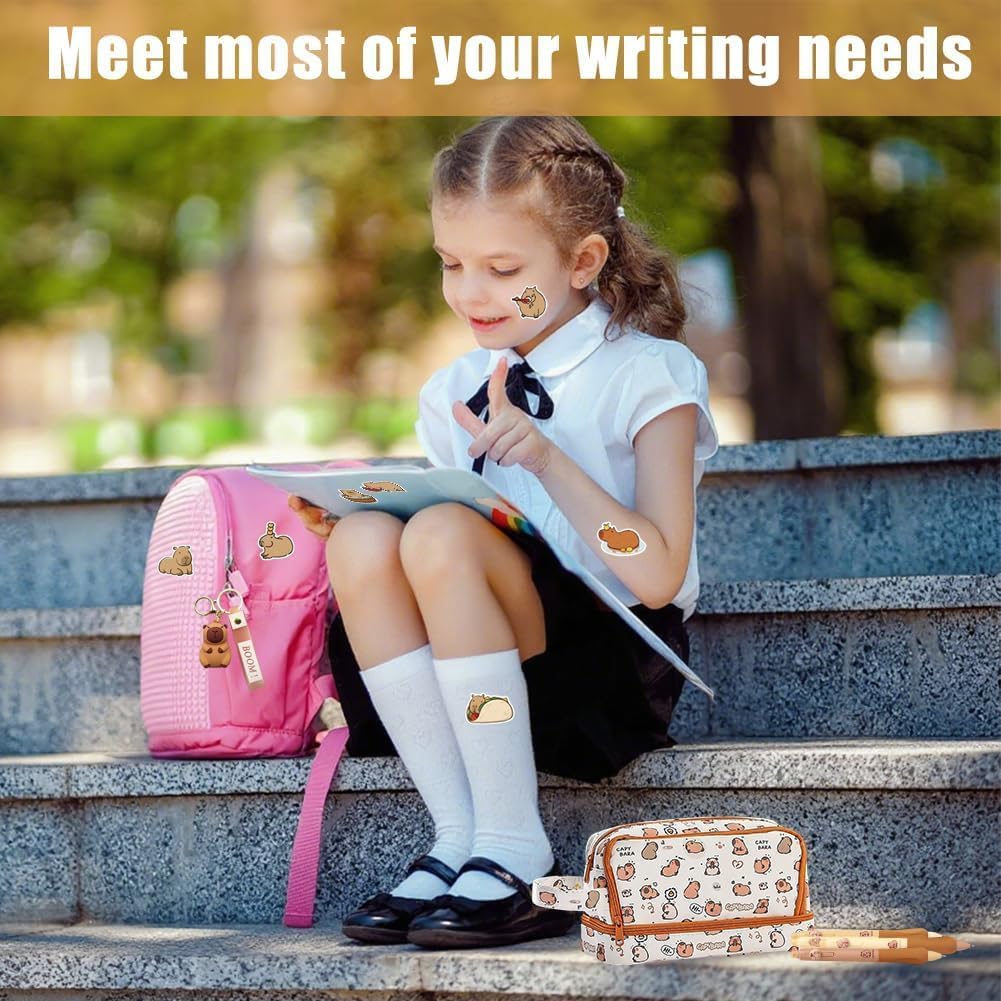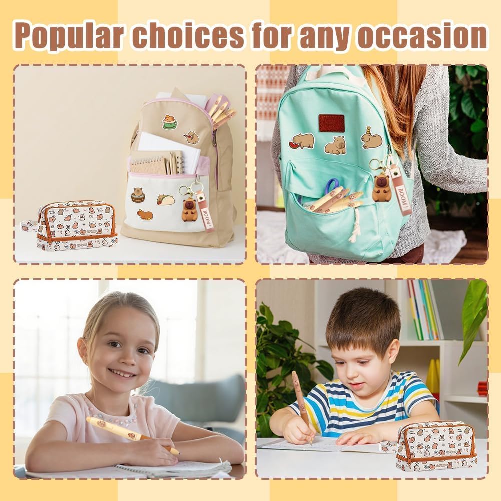 Tessuto Oxford di alta qualità per una lunga durata. Realizzato in materiale Oxford ad alta densità, questo astuccio è resistente agli strappi, impermeabile e facile da pulire. La struttura robusta garantisce che rimanga intatta anche con l'uso quotidiano, corrisponde esattamente alla descrizione del prodotto per ridurre al minimo i ritorni e offre ai genitori fiducia nella qualità. Set pratico 4 in 1 con design carino. Include un ampio astuccio trasparente a 3 strati, 50 adesivi giocosi, 4 penne gel cancellabili e un simpatico portachiavi. Progettato per gli studenti, combina lo stoccaggio funzionale con la creatività giocosa per l'apprendimento organizzato e il divertimento. Il design con motivo Kapibara per il piacere quotidiano dei personaggi dei cartoni animati di Kapiba entusiasma il set con colori vivaci e dettagli affascinanti. La cerniera liscia, gli angoli arrotondati del portachiavi e gli scomparti trasparenti garantiscono sicurezza e facilità d'uso mentre presentano creazioni adesive. Versatile per scuola, viaggi e molto altro Perfetto per aule, Kunst-AG o gite in famiglia. Il design multistrato leggero mantiene penne, gomme e piccoli oggetti ordinatamente ordinati, mentre le dimensioni compatte si adattano facilmente agli zaini per organizzare in viaggio. Regalo perfetto per le pietre miliari dei bambini. Un pacchetto economico che unisce praticità e divertimento Ideale come regalo di compleanno, sorpresa per l'inizio della scuola o come regalo per le vacanze: risveglia la gioia e promuove la creatività, rendendolo popolare tra bambini e genitori.