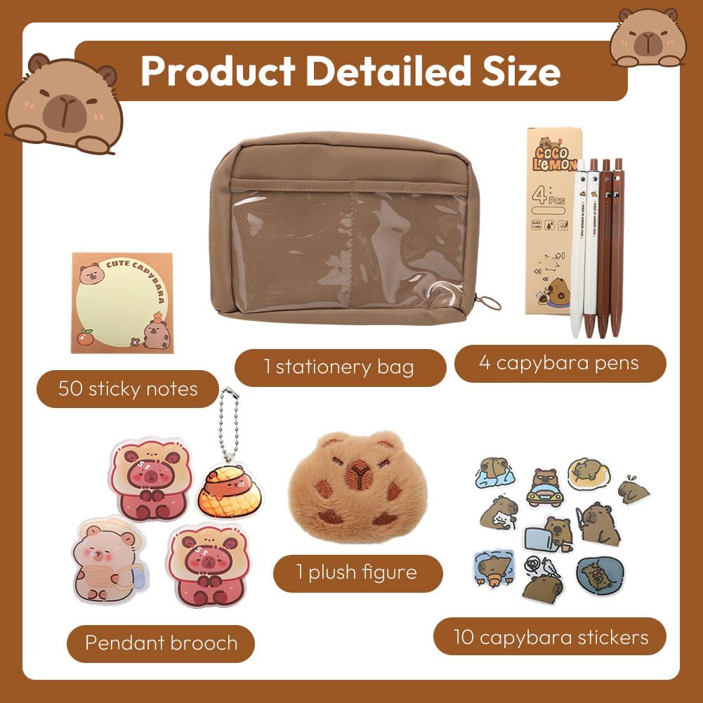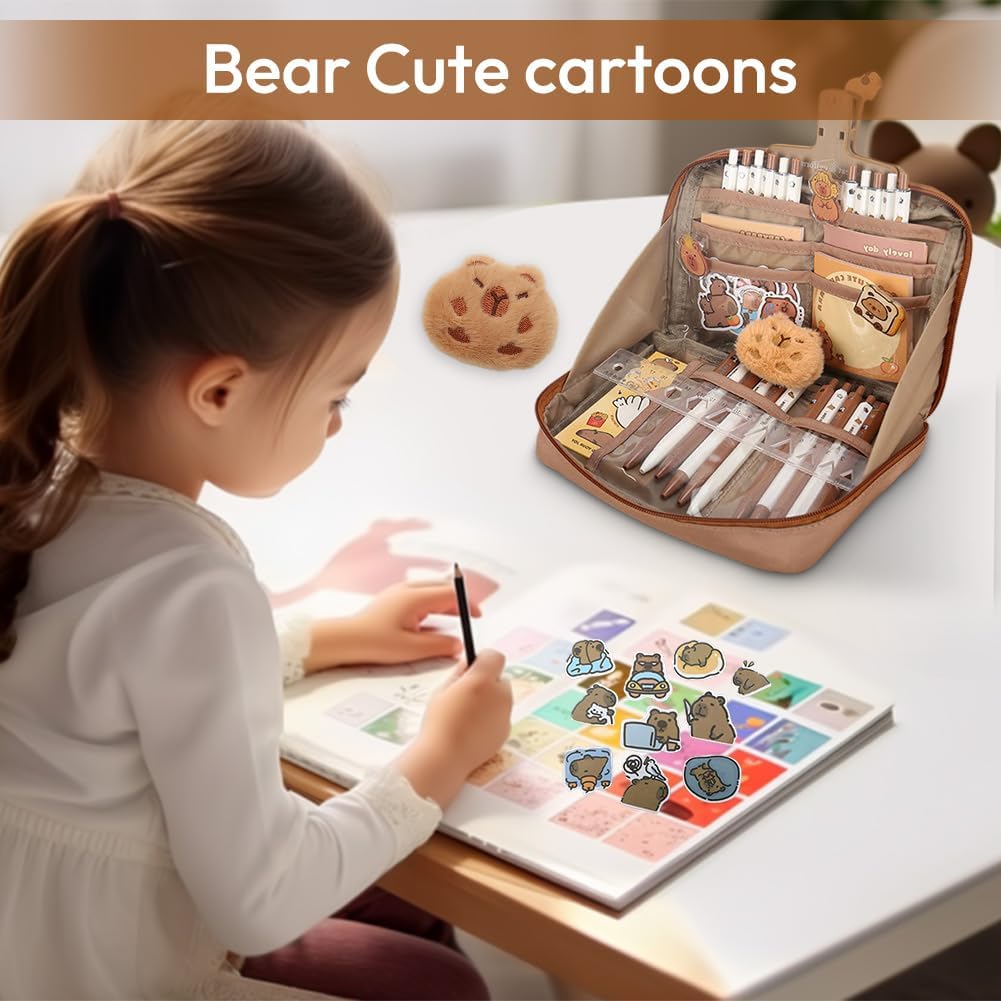 Set di cancelleria Capybara: sistema di archiviazione multistrato, include una tasca portaoggetti accuratamente posizionata per mantenere i tuoi oggetti in ordine. Grazie alla sua flessibilità, puoi classificare gli articoli in base alle tue esigenze personali. Ampia apertura: il set di cancelleria EUBSWA Capybara presenta un design ad apertura ampia, consente un facile accesso alla cancelleria di cui hai bisogno, garantendo così un accesso efficiente e rapido a ciò di cui hai bisogno. Materiali di alta qualità: set di cancelleria Capybara realizzato in materiale eccellente, è un'ottima opzione per riporre articoli di cancelleria, può essere tranquillamente utilizzato per molto tempo. Multifunzione: perfetto per riporre matite, righelli, gomme e penne, ideale per studenti, artisti e professionisti, per mantenere i vostri oggetti essenziali organizzati. Regalo perfetto: ideale per regali di festival e compleanni, con questo adorabile set di carta da lettere Capybara con adorabili disegni, rendendo più divertente organizzare la cancelleria.