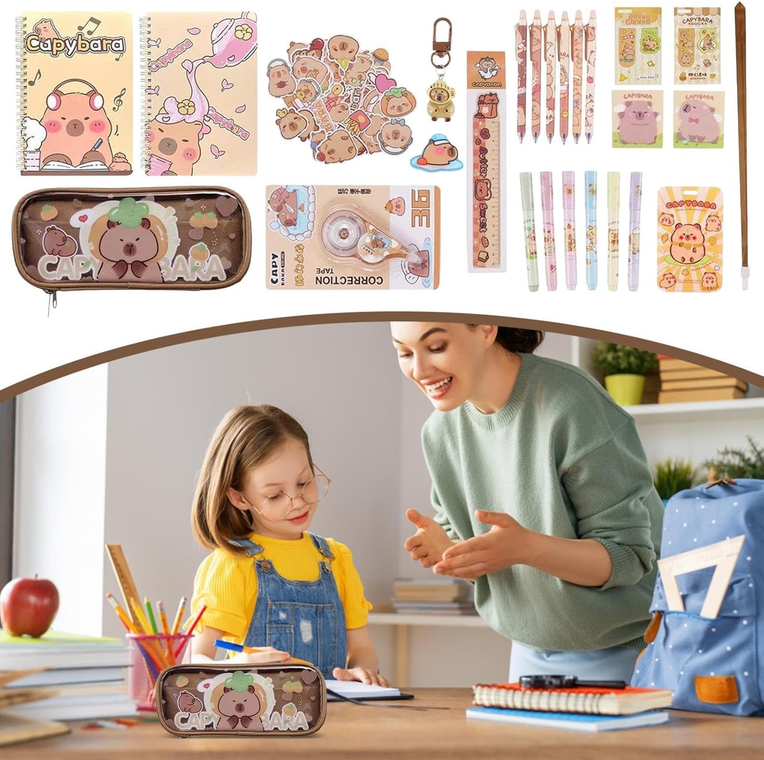 Quaderni di Lunga Durata: I quaderni Capybara School Supplies combinano inchiostro cancellabile e tecnologia anti-trasudo, permettendo correzioni facili senza danneggiare le superfici della carta. Questo offre sicurezza durante test o stesura di , con pagine che rimangono intatte dopo ripetute revisioni. La carta liscia e la resistenza alle sbavature migliorano l'esperienza di scrittura, ideale per appunti o compiti prolungati. I materiali durevoli assicurano che i quaderni mantenga Interesse per l'Apprendimento Cresce: Capybara Stationery unisce il fascino infantile a design giocosi e capricciosi, incoraggiando i giovani studenti a esplorare nuove idee e sviluppare un interesse più profondo per l'apprendimento durante i compiti in classe o le attività creative ricreative. Questo approccio spontaneo stimola la curiosità e promuove un ambiente di apprendimento piacevole e coinvolgente per tutti i bambini, favorando la scoperta di concetti educativi in modo naturale attravers Soluzione di Archiviazione Compatta: Questo astuccio capibara offre un design leggero e una pratica tasca per carte, promuovendo esperienze di scrittura e rendendo facile trasportare taccuini e articoli di cancelleria durante gli spostamenti quotidiani o i viaggi. La sua struttura compatta assicura organizzazione e accessibilità, ideale per studenti e professionisti che necessitano di un o funzionale e portatile per la scuola o il lavoro. Soluzione di Archiviazione Versatile: L'astuccio Capybara include multiple compartimenti che mantengono penne, matite e piccoli articoli di cancelleria perfettamente organizzati. Gli adesivi divertenti inclusi aggiungono un elemento giocoso per decorare diari o per l'uso quotidiano a scuola, lavoro o in progetti creativi. Combina organizzazione e divertimento in un design funzionale e adattabile a diverse esigenze. Ricca Collezione : Il set di cancelleria Capybara unisce un design caldo e accogliente a una ricca gamma di , rendendolo un regalo pratico e funzionale per gli amanti degli animali. Il tema speciale ispirato al capybara aggiunge una piacevole alle attività di scrittura quotidiane, sia in casa che in ufficio, arricchendo ogni momento con gioia e creatività per un uso personale o professionale.