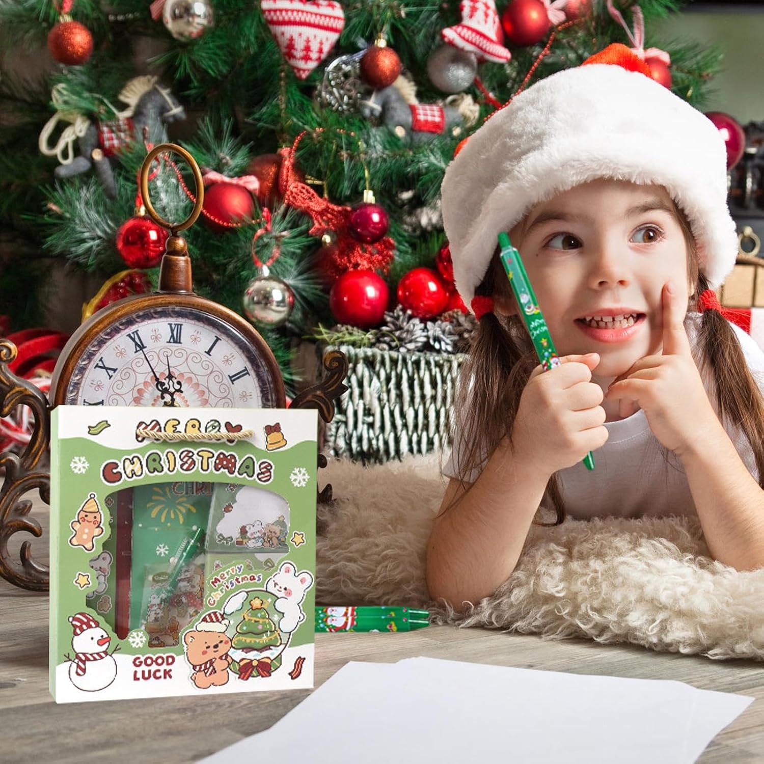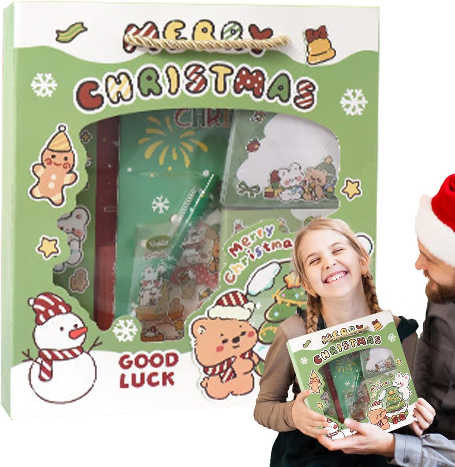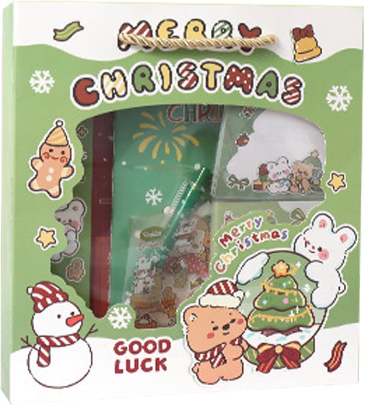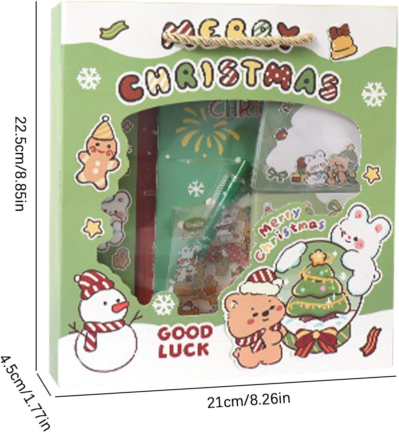 Accessori vari: libera la tua creatività con un astuccio scolastico completo, compreso 1 spilla, 1 taccuino e 1 segnalibro magnetico, accompagnato da un sacchetto regalo e 1 penna gel per le tue esigenze Stile squisito dei cartoni animati: i motivi dei cartoni animati, come pupazzo di neve, alberi con Babbo Natale e renna, aggiungono un'atmosfera alla scuola durante il periodo natalizio. Ampio utilizzo: migliora le feste con il nostro set di cancelleria scolastica di Natale, un must per qualsiasi riunione. Usalo come premio scolastico o come premio di carnevale, o diffondilo presentandolo come regalo di Natale. Design affidabile: garantisce la sicurezza e la longevità delle forniture scolastiche dei tuoi con questo set di cancelleria scolastica natalizio. Realizzato con materiali affidabili che resistono a danni e deformazioni, questo set è progettato per durare nel tempo Design accattivante: il set di cancelleria scolastica natalizio offre agli studenti un modo divertente e festivo per organizzare appunti durante le feste. È colorato e accattivante per i giovani studenti
