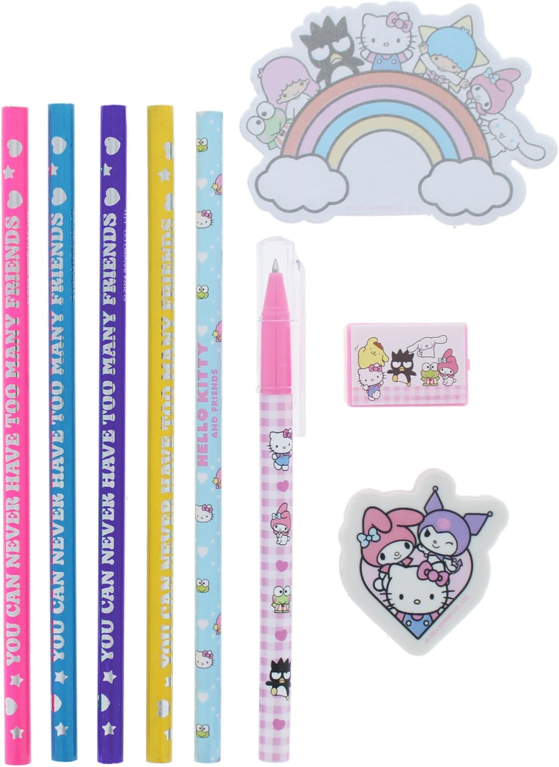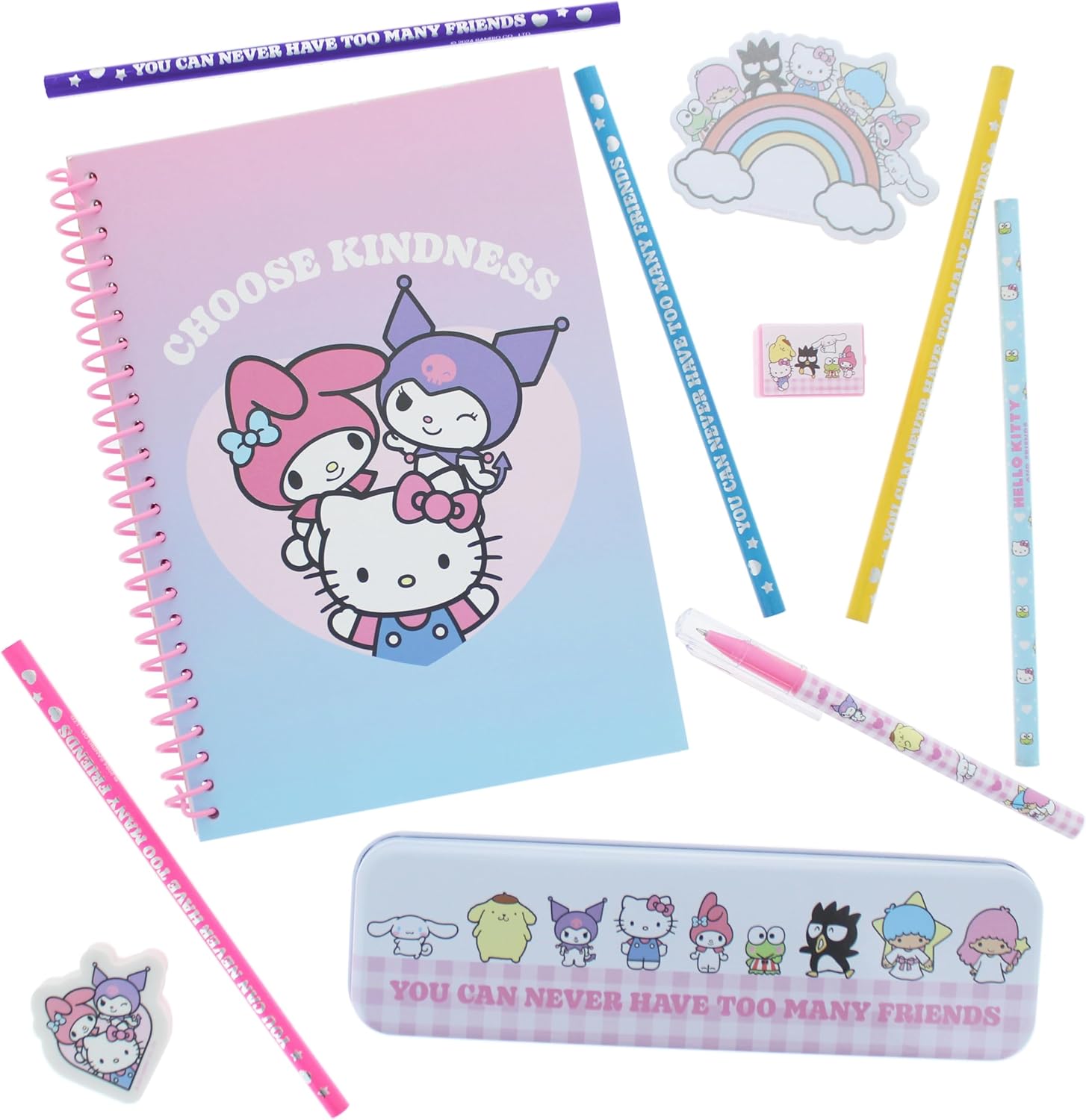 Contenuto: questo set di cancelleria Hello Kitty include un quaderno A5, una penna a sfera, una matita, 4 matite colorate, una gomma, un temperamatite, foglietti adesivi e un astuccio, assicurando che tutte le tue esigenze di cancelleria siano coperte in un unico adorabile pacchetto. Nuovo design: con gli amati personaggi di Hello Kitty & Friends, questo set presenta un design fresco che delizierà i fan di tutte le età. Il portafoglio trasparente con cerniera mette in risalto i personaggi con dettagli vivaci. Pratico: misura circa 24 x 25 cm, questo set è compatto e comodo da usare in viaggio. Il portafoglio trasparente con cerniera consente di riporre e organizzare facilmente, mantenendo i tuoi articoli di cancelleria sicuri e accessibili. OTTIMO REGALO: Perfetto per gli amanti di Hello Kitty, questo set di cancelleria è un regalo meraviglioso per compleanni, vacanze o qualsiasi occasione speciale. Il suo contenuto completo lo rende pratico e ponderato. Licenza ufficiale: stai certo che stai ricevendo un autentico prodotto Hello Kitty, poiché questo set di cancelleria ha la licenza ufficiale Sanrio. Goditi la qualità e il fascino dei prodotti autentici delle collezioni Blueprint.