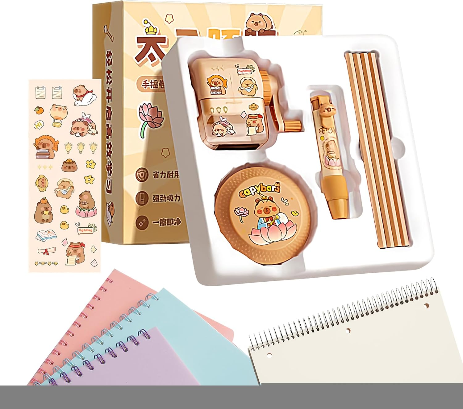 Soluzione Pulizia Multiuso: Combina un efficiente aspirabriciole elettrico per la scrivania, un affidabile temperamatite a manovella e gomme resistenti con impugnatura morbida per un utilizzo quotidiano senza sforzo Massima Igiene: L'aspiratore elettrico elimina efficacemente i frammenti di gomma da cancellare, favorendo un ambiente di studio piacevole che incrementa l'efficienza e si adatta praticamente a tutti i tipi di matite Sicurezza Garantita: Costruzione robusta in PP resiste all'uso frequente mantenendo la qualità nel , affidabilità costante per serenità duratura nell'impiego quotidiano Divertimento Assicurato: Porta sorrisi a bambini e ragazzi con questo set cancelleria , creato per esprimere cura in occasioni come compleanni, festività stagionali o celebrazioni di Capodanno Accessorio Didattico Divertente: Motivi giocosi ed ispiratori con capibara e panda astronauta attirano l'interesse e motivano i giovani studenti durante le attività di apprendimento