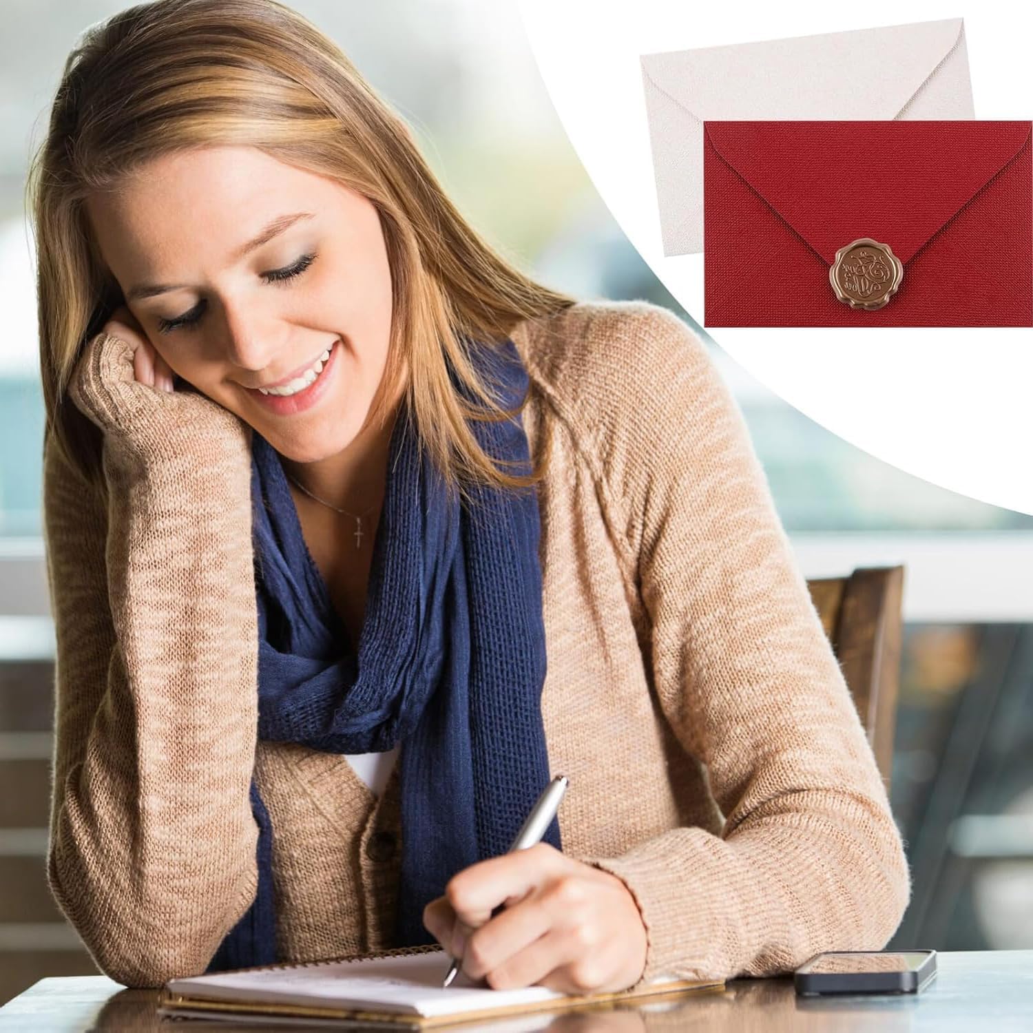 Set completo: include 6 buste testurizzate in lino di alta qualità, 20 fogli A5 e sigilli decorativi in cera per un'esperienza di scrittura vintage elegante Design elegante: i bellissimi sigilli in cera color rame e la carta di alta qualità creano un aspetto sofisticato e classico, perfetto per corrispondenza speciale Uso versatile: ideale per inviti di nozze, lettere formali, biglietti di auguri, biglietti di ringraziamento e altre occasioni speciali che richiedono un tocco raffinato Carta premium: i fogli di formato A5 presentano una superficie liscia e foderata, perfetta sia per la scrittura a penna che a inchiostro Stile distintivo: le buste rosse con finitura ruvida e sigilli in cera di ispirazione vintage aggiungono un tocco unico e personalizzato alla tua corrispondenza