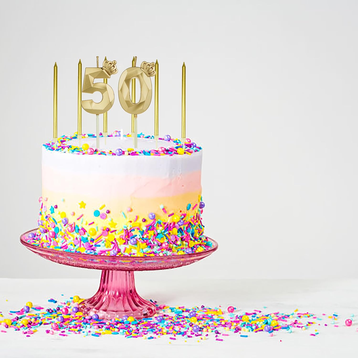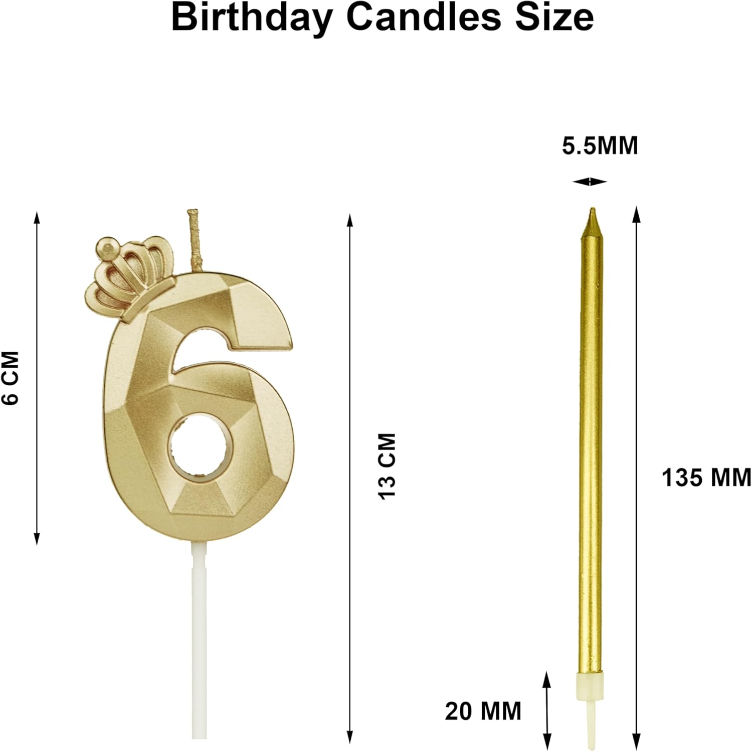 Materiali di alta qualità e sicuri: la candela per il 50° compleanno della corona d'oro è realizzata in cera ecologica di alta qualità, inodore, atossica e sicura da usare, brucia in modo uniforme e costante, facile da inserire e leggera, i colori vivaci non sbiadiscono facilmente, consentendo di utilizzare con fiducia per un lungo periodo di tempo. Design innovativo: candele dal design creativo con numeri in metallo con una forte sensazione tridimensionale, colori vivaci e brillanti quando accesi. Le nostre decorazioni per anniversario di matrimonio porteranno un'atmosfera romantica ed elegante renderanno la tua festa ancora più bella e indimenticabile per tutta la vita. Dimensioni del prodotto: ogni candela per torta di compleanno misura circa 5 cm di lunghezza e 1,26 cm di spessore, con una lunghezza totale (incluso il supporto) di circa 11,5 cm e un tempo di combustione di circa 3-5 minuti, ti danno abbastanza tempo per esprimere più desideri. Dove usare: la candela di buon compleanno dei numeri è adatta per compleanni, feste di anniversario, matrimoni, festa del papà, festa della mamma, lauree, feste a tema, feste di pensionamento, riunioni di famiglia, baby shower e altre celebrazioni per darti una migliore ispirazione per foto e sorprendere e riportare bei ricordi ai tuoi amici e familiari. Lista di imballaggio: ricevi 2 candele numeriche decorazioni di compleanno e 6 candele dorate lunghe, bell'aspetto, possono essere utilizzate singolarmente o combinate insieme, adatte per uomini, donne e bambini.