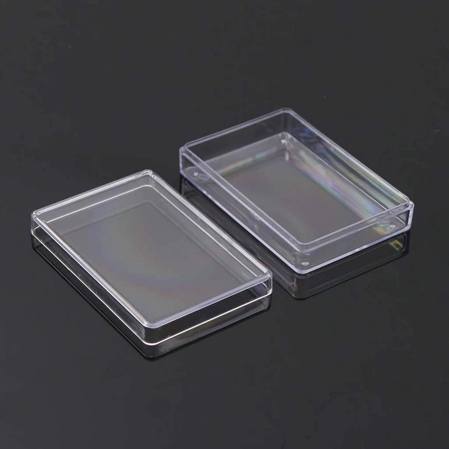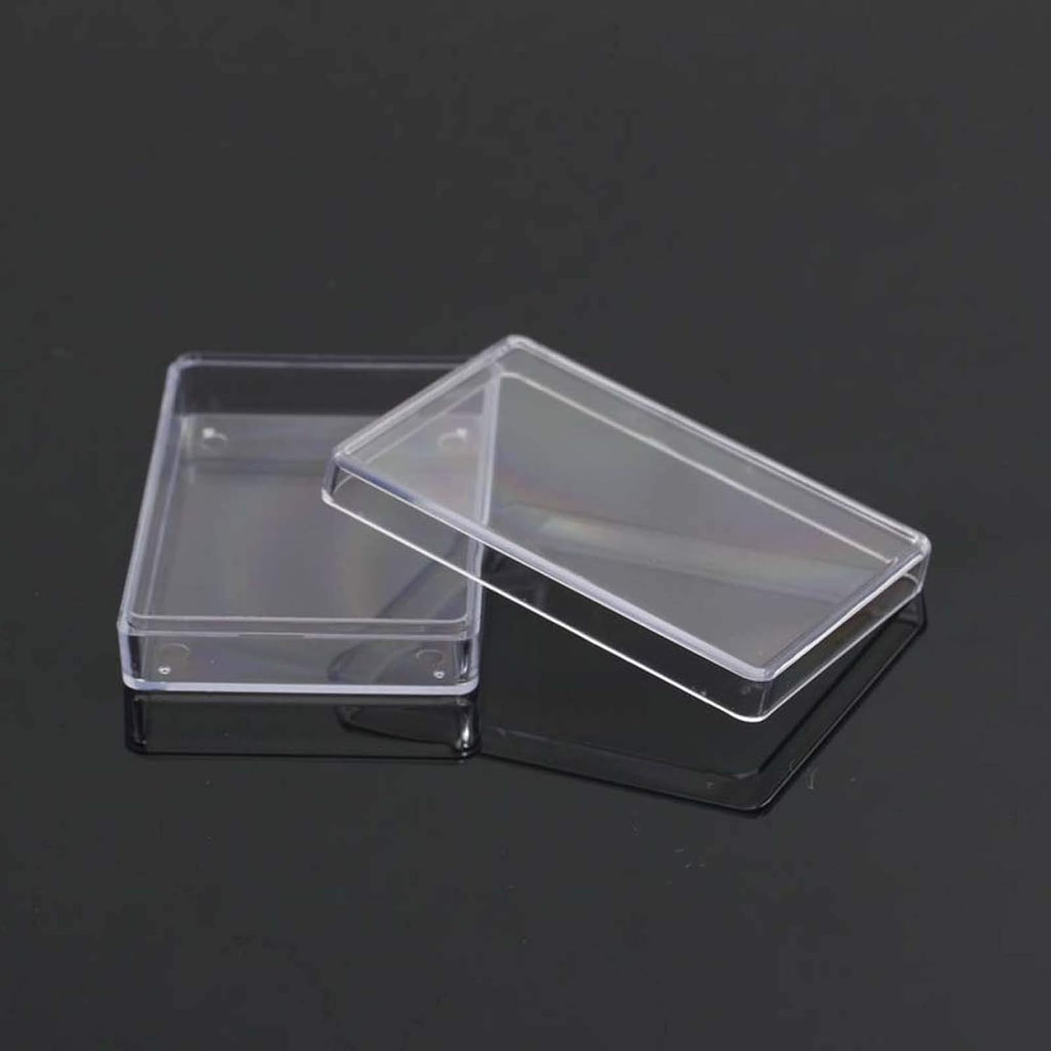 Contenitore riutilizzabile, facile da riporre le carte da gioco Materiale: Dimensioni: circa 94 x 64 x 22 mm Scatola rettangolare trasparente, ideale per feste, club, luoghi di intrattenimento, per conservare biglietti Realizzato in materiale resistente, spesso e a lungo termine