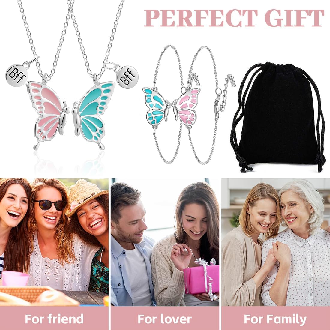 CONFEZIONE: collana amicizia/ Il set comprende 1 paio di collane bff e 1 paio di braccialetti a farfalla. Il design unico delle collane simboleggia la bella amicizia delle ragazze. La collana a farfalla è più attraente, le ragazze la amano assolutamente. MATERIALE: collana bambina Realizzato in materiale di alta qualità, soddisfa i rigorosi standard di sicurezza e di materiale atossico, durevole, resistente ai colori e meno irritante. Adatta e comoda da indossare. DESIGN SPECIALE: 2 delicati disegni individuali a mezza ala che possono essere abbinati per formare una grande farfalla. Anche se siete lontani, i vostri cuori sono sempre uniti. collana BFF/Segna il legame profondo e indissolubile tra voi e la vostra migliore amica, madre, figlia, sorella. ADATTO COME REGALO:collana amicizia Uno splendido set regalo di gioielli per le vostre migliori amiche, figlie, sorelle a Natale, anniversario, compleanno, festa e altre occasioni, lasciate che lo abbiano insieme. Adatto per le occasioni:collana bambina Può essere abbinato a qualsiasi vestito e anche adatto a tutte le occasioni, sia che si tratti di un appuntamento, una festa, un matrimonio o una celebrazione, sarete la persona più abbagliante nel pubblico che lo indossa.