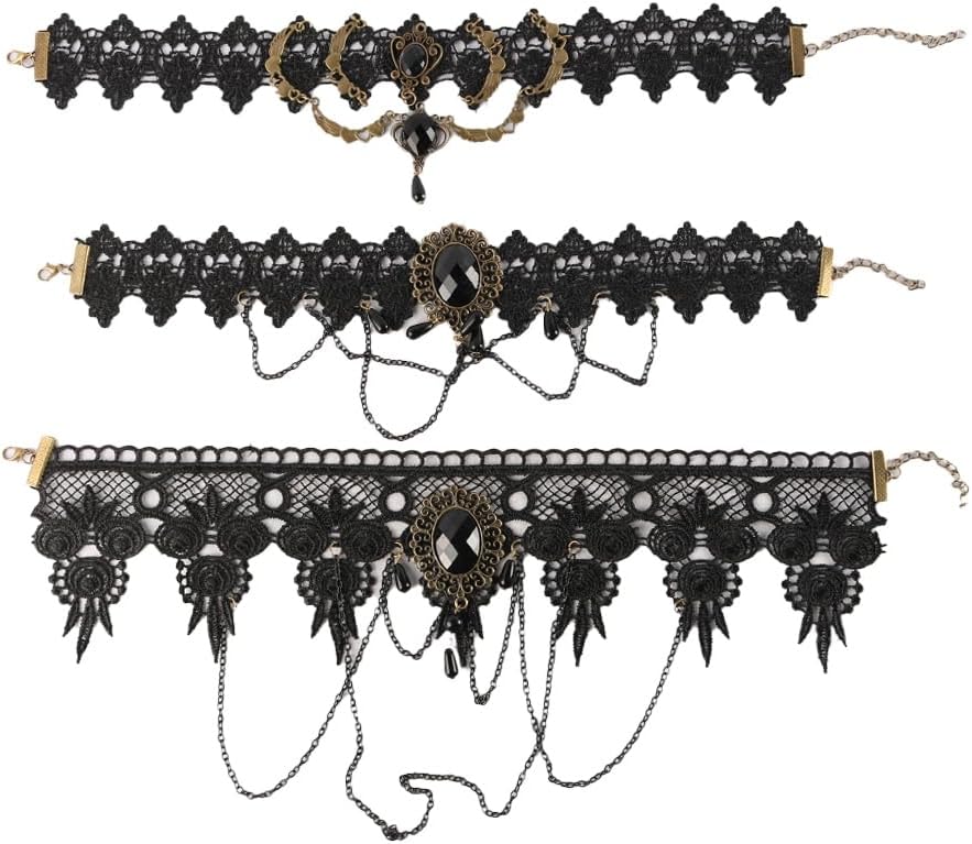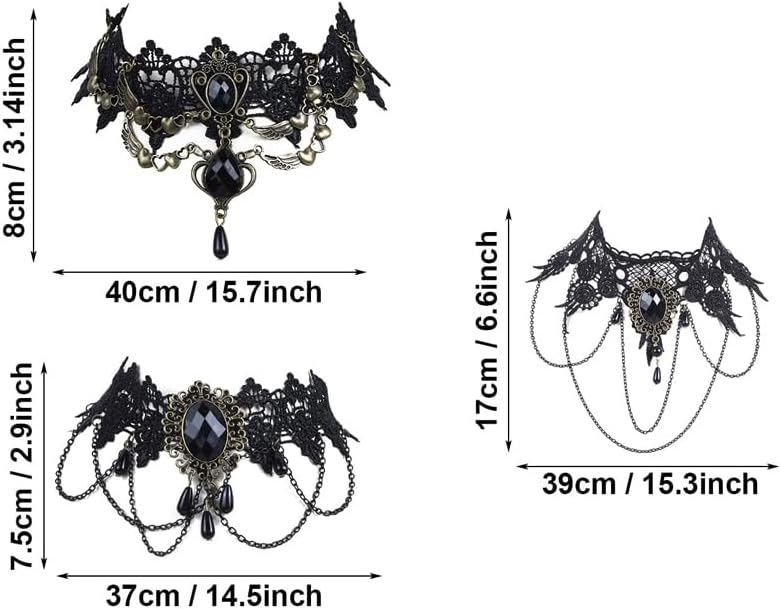 Look gotico completo: questo set include 3 splendide collane girocollo in pizzo nero, pensate per completare il tuo outfit gotico, di Halloween o ispirato ai vampiri, perfette per feste a tema o eventi speciali. Versatile accessorio per Halloween: che tu voglia travestirti per un ballo in maschera, per il Carnevale o per festeggiare Halloween, questi girocolli in pizzo aggiungeranno il tocco ideale di eleganza e mistero al tuo costume. Design unico e intricato: ogni girocollo di questo set presenta intricati dettagli in pizzo e un design a catena, creando un sorprendente effetto visivo che valorizza qualsiasi ensemble a tema gotico o vampirico. Perfetti per feste in maschera e eventi in costume: questi choker in pizzo sono accessori ideali per feste in maschera, balli in maschera e raduni a tema, offrendo un'aggiunta elegante e spettacolare al tuo look. Regolabili e comodi: progettati con chiusure regolabili, questi choker sono facili da indossare e possono essere personalizzati per una vestibilità comoda, assicurandoti di sentirti sicura durante l'evento.
