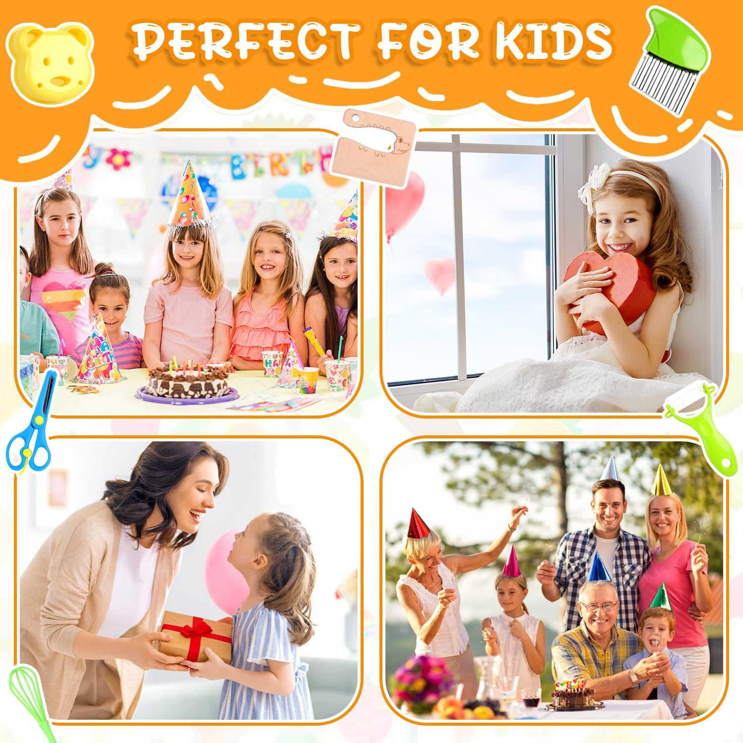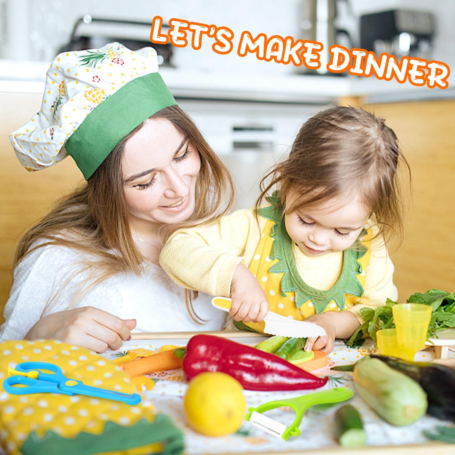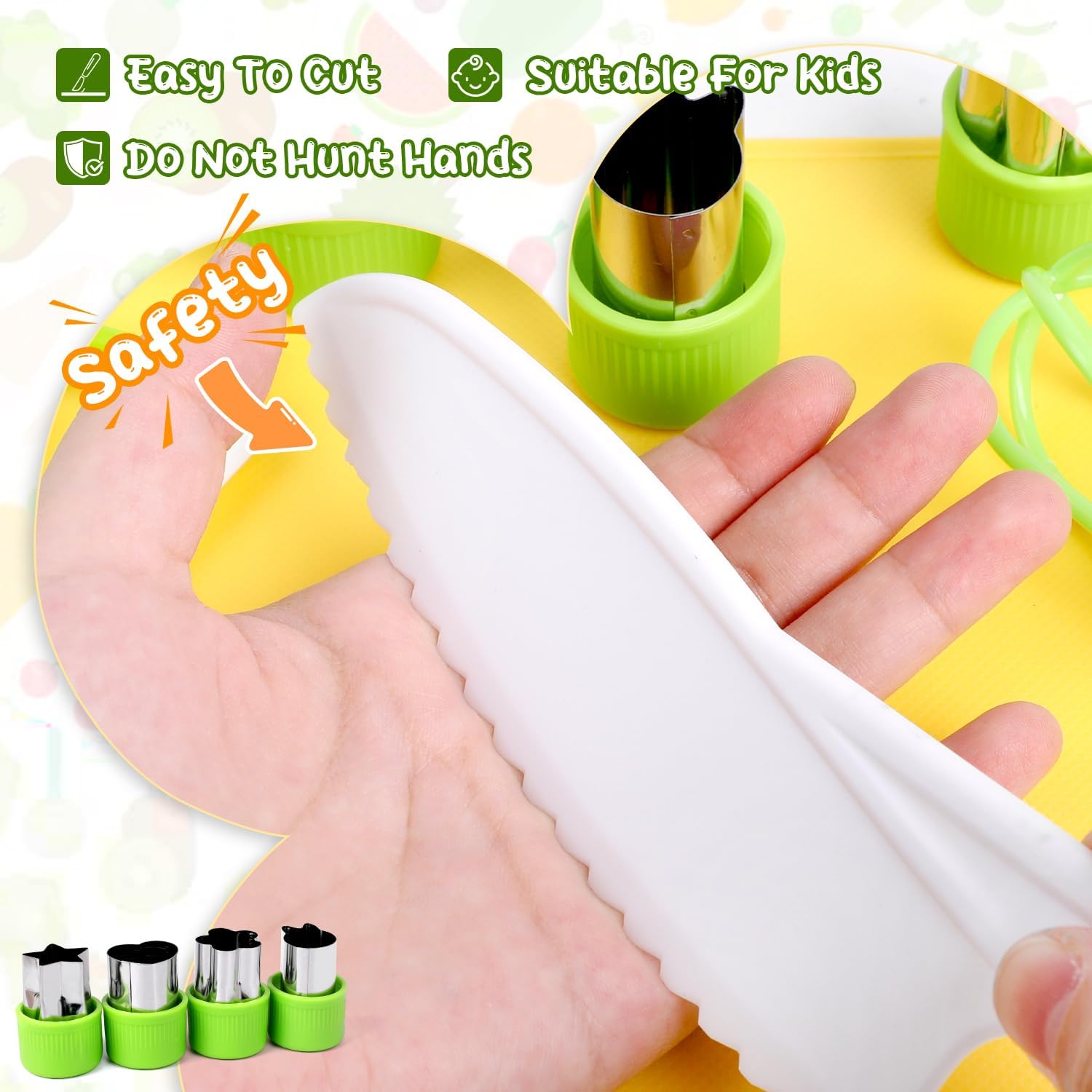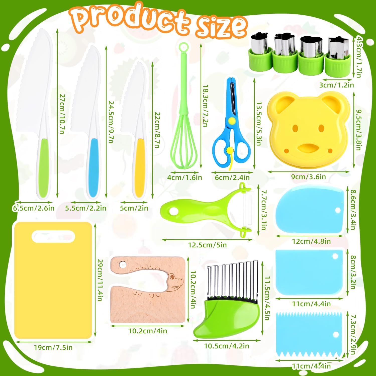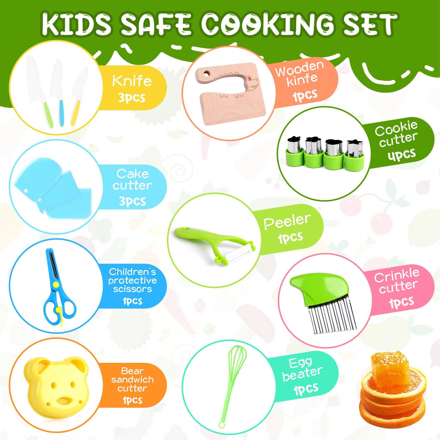【Set da cucina per bambini】Il pacchetto del set include 1 coltello in legno per bambini, 3 coltelli seghettati per bambini di diverse dimensioni/colori,3 tagliapasta per torte, 1 forbice protettiva per bambini, 1 tagliapasta a forma di orso, 4 tagliapasta per biscotti, 1 pelapatate, 1 tagliapasta ondulato, 1 sbattitore per le uova.Vari utensili da cucina per bambini sono disponibili come giocattoli Montessori, adatti a ragazzi e ragazze. 【Materiali sicuri】Questi set di coltelli per bambini sono realizzati con materiali atossici e privi di BPA, sicuri da usare, di squisita fattura, non facili da rompere o deformare, consentendo ai tuoi bambini di vivere un'esperienza di cucina felice e interessante. 【Design unico e raffinato】Il coltello in legno è leggero e raffinato, decorato con un grazioso motivo a coccodrillo, che stimola la curiosità dei bambini e li incoraggia a divertirsi in cucina con la famiglia. La lama seghettata garantisce un taglio sicuro e previene lesioni alle manine. 【Sviluppo delle capacità】Questo coltello giocattolo è progettato appositamente per i bambini, che possono cucinare in famiglia, stimolando la loro creatività e offrendo loro un'esperienza d'uso piacevole e interessante. Permette inoltre ai bambini di apprendere le tecniche corrette per usare i coltelli e le nozioni di sicurezza in cucina. 【Un regalo perfetto per i bambini】Gli utensili da cucina Montessori sono perfetti come regalo per compleanni, festività o per la Festa dei Bambini. Hanno la doppia caratteristica di essere giocattoli e utensili, aiutando i bambini a stare lontani dagli schermi elettronici. Sono la scelta ideale per coltivare la collaborazione familiare e le competenze di vita.