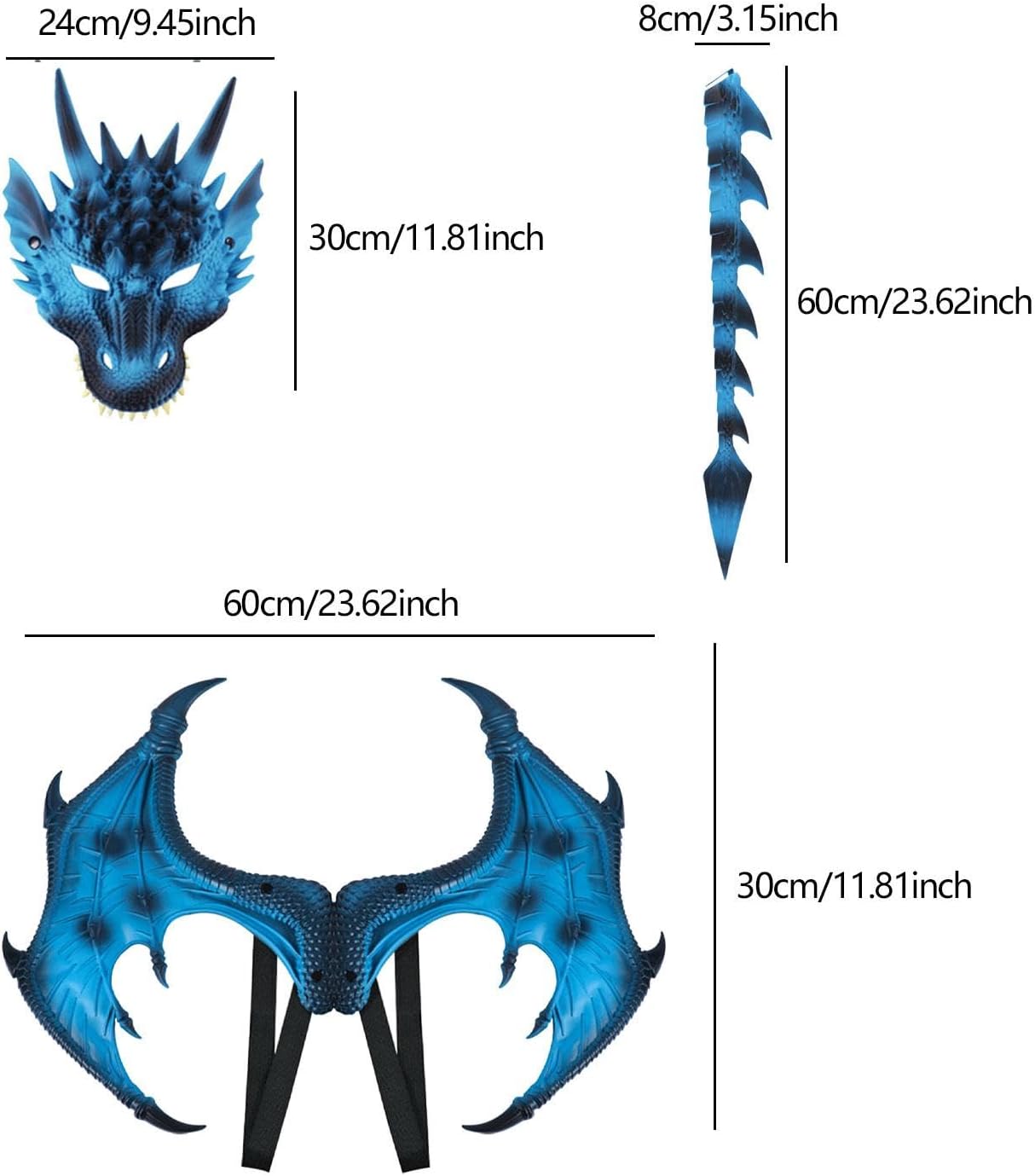 Descrizione: [Design classico] Dragon Cosplay Wing Set presenta un tema drago e adatto per la maggior parte delle persone, bambini, ragazzi, ragazze, età applicabile 6-14 anni bambini Facile da indossare: il set cosplay per bambini con tracolla larga rende l'ala del drago di rimanere in posizione e comoda da indossare Informazioni sulle taglie: ala circa 60 cm x 30 cm, copertura viso 30 cm x 24 cm, coda 60 cm x 8 cm. Occasione: costume cosplay da drago adatto per la giornata dei bambini, Halloween, carnevale in maschera, Pasqua, cosplay o qualsiasi altra festa Materiale di alta qualità: questo costume da drago è realizzato in gomma morbida e tessuto espanso, molto vivido nella forma, aspetto unico e realistico Specifiche tecniche: Materiale: Gomma, Schiuma Tabella delle taglie: Ala circa 60 cm x 30 cm, copertura viso 30 cm x 24 cm, coda 60 cm x 8 cm. La confezione include: 1 set costume da ala di drago. Nota: Si prega di considerare un leggero margine di errore dovuto alla misurazione manuale e ai diversi monitor.