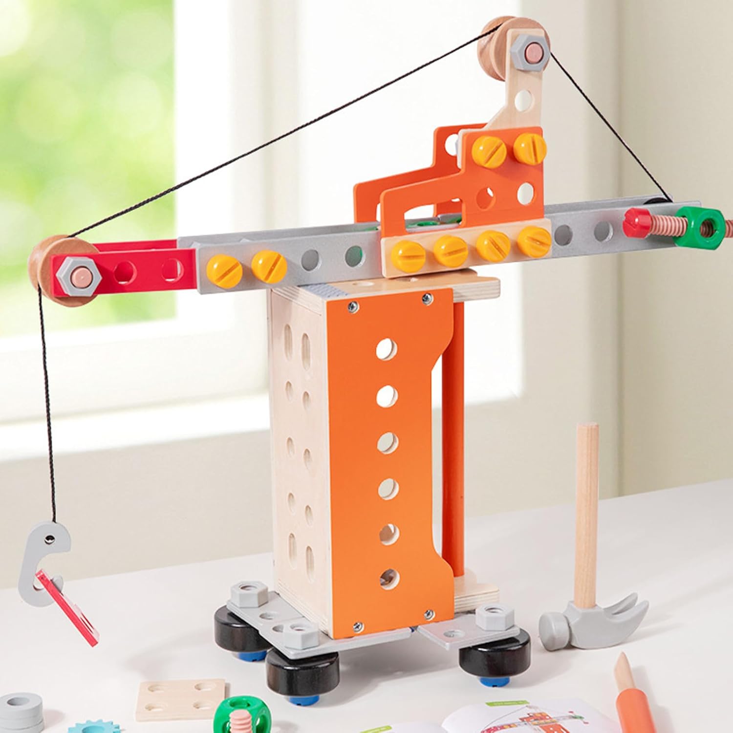 Esperienza di Gioco Sostenibile: Realizzato con legno naturale ecologico, questo set di costruzione con e bulloni fornisce strumento solido e affidabile per l'apprendimento pratico, permettendo ai bambini di esplorare concetti di ingegneria in sicurezza, godendo della sensazione organica dei materiali da fonti responsabili. Il gioco sostenibile favorisce la creatività e le abilità cognitive, con un design durevole che resiste all'usura quotidiana, ideale per uso domestico o scolastico, Strumenti di Apprendimento Sicuri: Progettati con materiale legnoso di alta qualità, questi e bulloni in legno per bambini includono controlli qualità severi e bordi levigati per una sicurezza ottimale. Sono ideali per incoraggiare la creatività e le capacità di problem solving nei giovani apprendisti, offrendo un strumento educativo divertente che supporta l'apprendimento pratico in un ambiente sicuro con giochi di costruzione per bambini. Giocattolo per Consapevolezza Spaziale: Dotato di una configurazione di banco da lavoro simulato, il giococattolo con e bulloni in legno aiuta a sviluppare la consapevolezza spaziale attraverso compiti pratici coinvolgenti, incoraggiando i bambini a pensare in modo critico mentre costruiscono varie forme, rendendolo per l'esplorazione creativa durante il gioco o laboratori educativi per un approccio hands-on alla risoluzione di problemi. Design Cassetta Portatile: I giocattoli da costruzione con e bulloni in legno per bambini presentano un design con cassetta degli attrezzi portatile che garantisce un facile immagazzinamento e trasporto, rendendoli perfetti per l'uso durante i viaggi e in ambiente domestico. Questa soluzione pratica stimola la curiosità e il gioco creativo in vari contesti, come in auto, in vacanza o in casa, grazie alla portabilità che agevola il divertimento ovunque senza ingombri. I bambini possono esplo Utilizzo Ampio e Diffuso: I giocattoli di e bulloni consentono ai bambini di esercitarsi nell'assemblaggio dei componenti mentre comprendono i principi meccanici, favorendo l'apprendimento pratico che migliora la coordinazione occhio-mano; queste esperienze interattive rendono il gioco con utensili sia educativo che divertente per i piccoli apprendisti in qualsiasi ambiente, stimolando la curiosità e le abilità manuali attraverso un approccio ludico e coinvolgente che incoraggia l'esplorazi