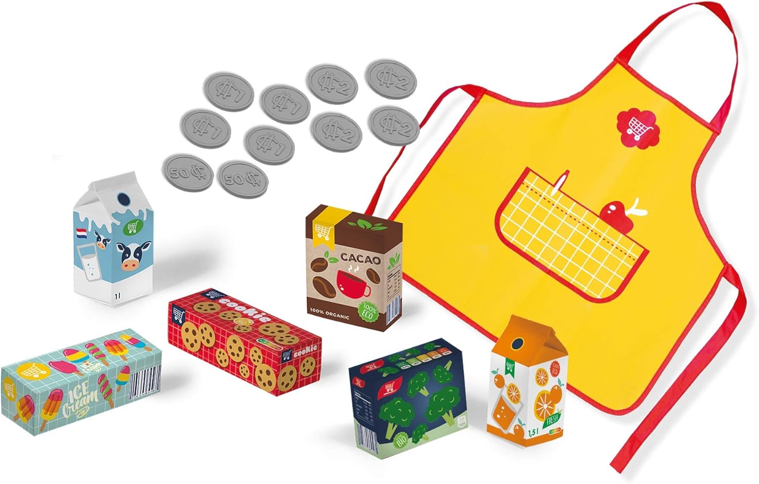 Grembiule realistico da commerciante 10 monete da gioco vere Divertimento alle feste in maschera Stimola l'immaginazione e la creatività attraverso il gioco Contiene tutto il necessario per giocare a commerciante per ore