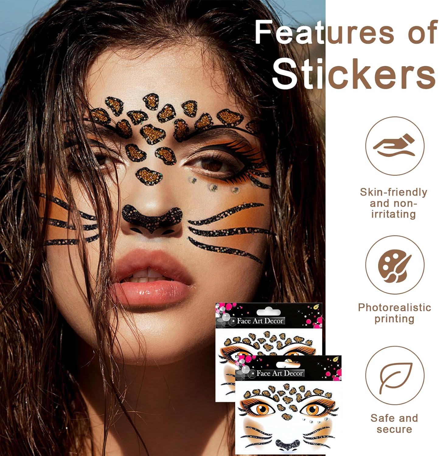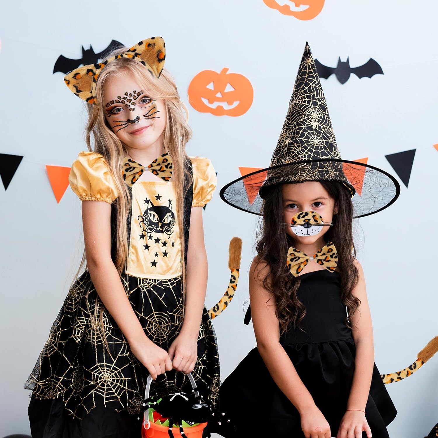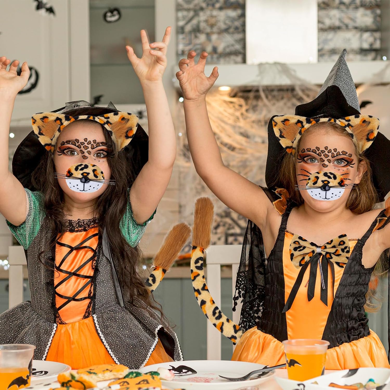 SET COSTUME LEOPARDO: Include 1 Cerchietto con orecchie di leopardo, 1 elegante coda da leopardo con anima in filo metallico modellabile, 1 papillon da leopardo, 1 naso da leopardo con cordino elastico, 1 adesivo per il viso glitterato, 1 paio di guanti da leopardo per un costume da leopardo completo. MATERIALE DI QUALITÀ E COMFORT: Tessuto di alta qualità, delicato sulla pelle, resistente e riutilizzabile. DESIGN LEOPARD PATTERN: Il realistico motivo leopardato e gli abbellimenti scintillanti ti fanno sembrare selvaggio e affascinante, quindi tutti gli occhi sono garantiti sul tuo costume da leopardo. DESIGN CREATIVO DEL VISO: Glitterati dettagliati adesivi per il viso rendono il tuo cosplay da leopardo ancora più perfetto e la tua combinazione di costumi ancora più armoniosa. ACCESSO MULTIFUNZIONALE PER PARTY: Perfetto per Halloween, carnevale, feste a tema o eventi a tema animale.
