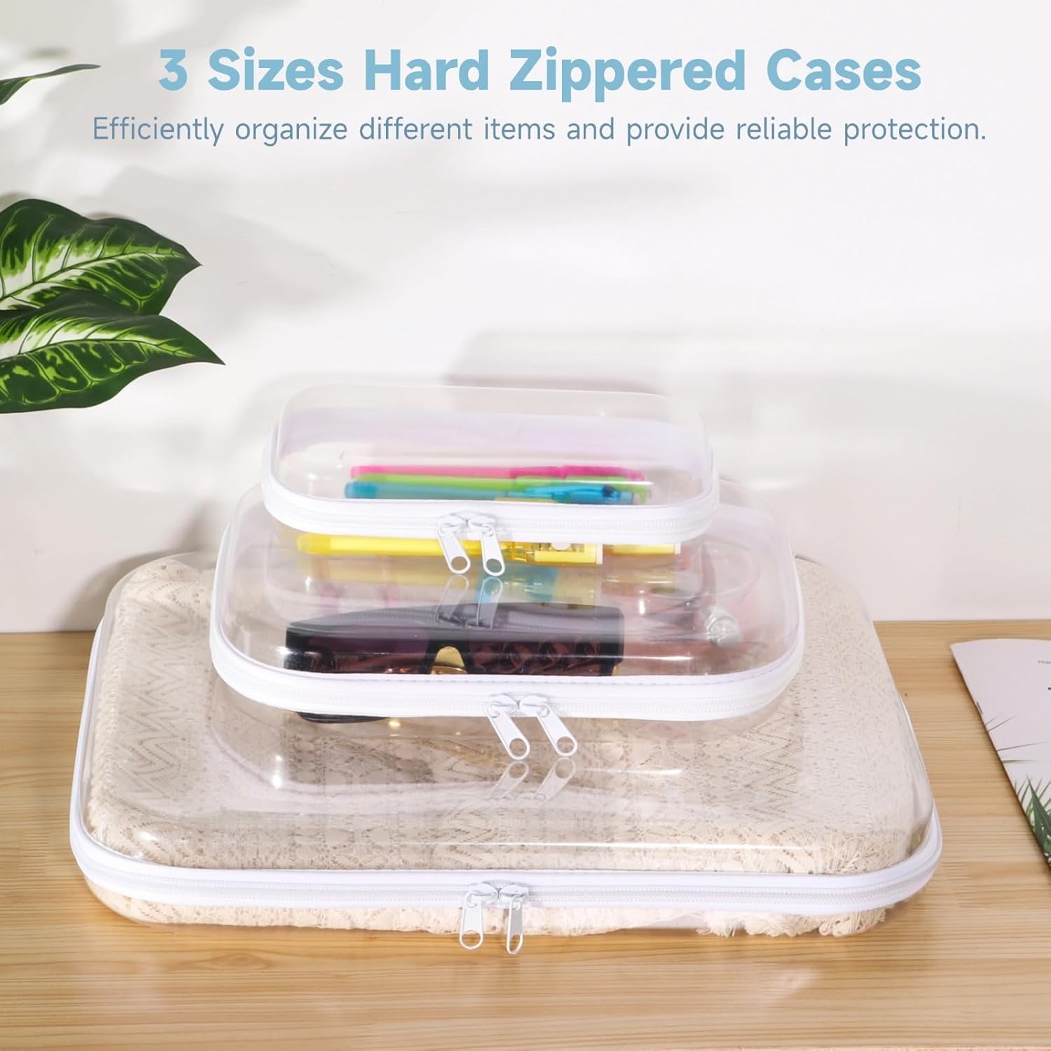 Set pratico: include tre dimensioni di custodie rigide: piccola (20 x 10 x 5 cm), media (24 x 20 x 5 cm) e grande (34 x 31 x 5 cm) - ideale per varie esigenze di stoccaggio Flessibilità di stoccaggio: grande per i vestiti, media per i giocattoli e piccola per i cosmetici, offre soluzioni di archiviazione su misura Durevole: la struttura rigida per animali domestici con doppie cerniere in metallo garantisce una protezione duratura dall'acqua e dallo sporco Impilabile e di facile accesso: le cerniere lisce consentono un accesso rapido; Le borse si impilano ordinatamente l'una dentro l'altra per riporle facilmente. Identificazione rapida: il design trasparente ti consente di vedere facilmente il contenuto e migliorare l'organizzazione dello stoccaggio
