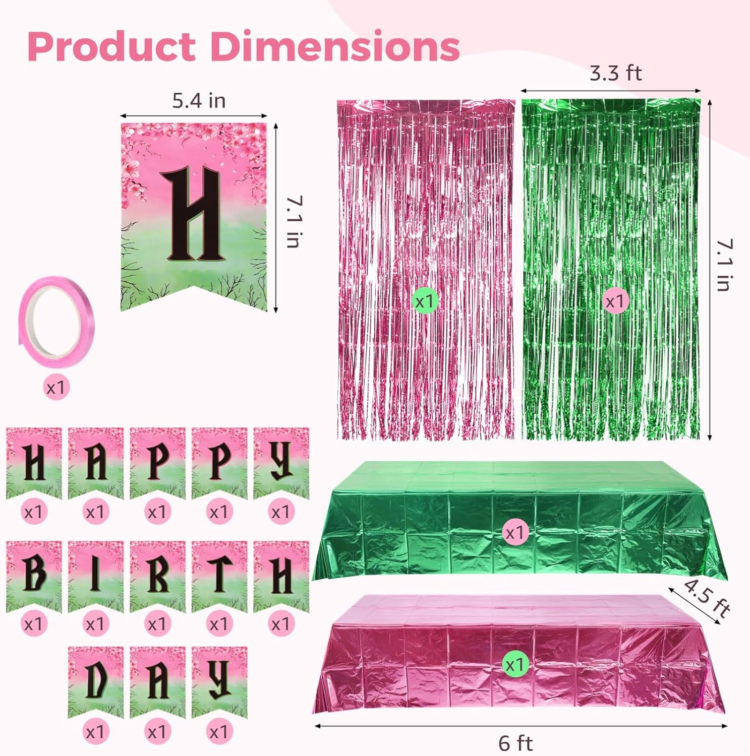 Set magico completo: viene fornito con 2 tende con frange verdi, 2 tovaglie impermeabili e un magico striscione di compleanno; progettato per coprire tutte le esigenze di decorazione della festa Stile strega magico: caratteristiche e design ispirati alle streghe verdi; aggiunge fantasia ed eleganza a qualsiasi ambiente di festa; per feste di compleanno o eventi a tema Tovaglie facili da pulire: il materiale impermeabile in foglio di alluminio protegge i tavoli da eventuali fuoriuscite o macchie; vibrante e facile da pulire; le dimensioni di 4,5 × 1,8 m si adattano a molti tavoli Splendido sfondo: tende con frange lucide da 3,3 × 2 m abbinate a un magico striscione di compleanno; retro autoadesivo sulle tende per una facile visualizzazione e installazione Ideale per qualsiasi luogo: materiali leggeri e compatti; da appendere o drappeggiare facilmente; per foto, dessert e feste, sia all'interno che all'esterno
