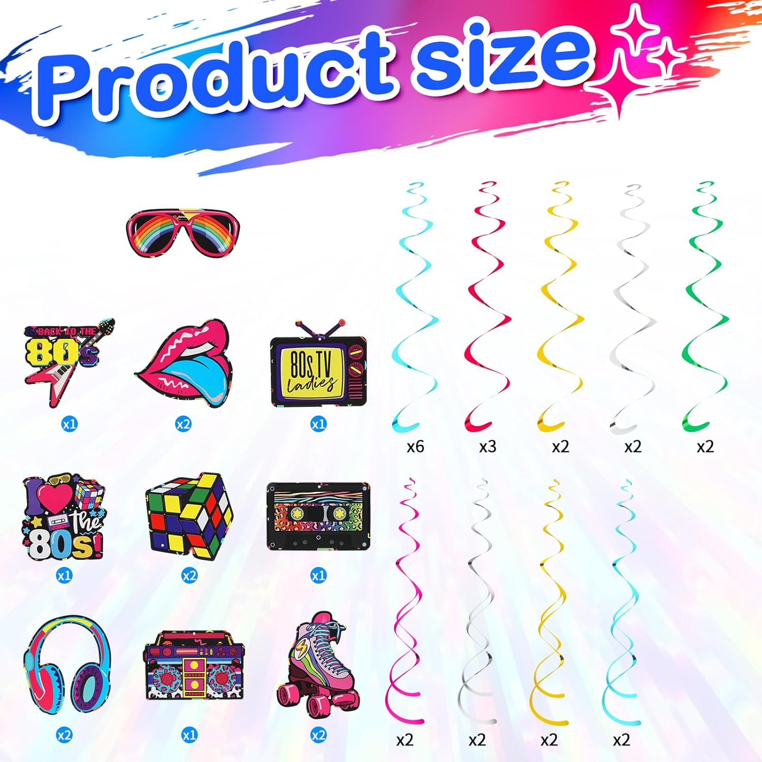 Contenuto della confezione: set completo di 38 decorazioni per feste con vivaci decorazioni a spirale a tema retrò, perfette per feste a tema anni '80 Decorazione versatile: adatta per feste a tema tra cui discoteca, carnevale, neon, hip hop e feste rock 'n' roll Facile installazione: decorazioni a spirale pronte da appendere che trasformano istantaneamente qualsiasi luogo in un'atmosfera nostalgica di festa anni '80 IMPATTO VISIVOLE: i design a spirale accattivanti creano effetti visivi dinamici quando appesi a soffitti o porte Pianificazione delle feste: ideale per feste di compleanno, eventi a tema, feste da ballo e riunioni in stile retrò