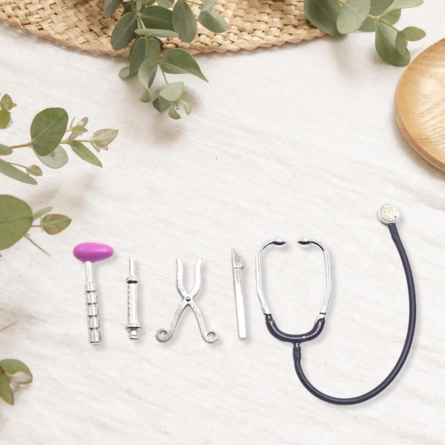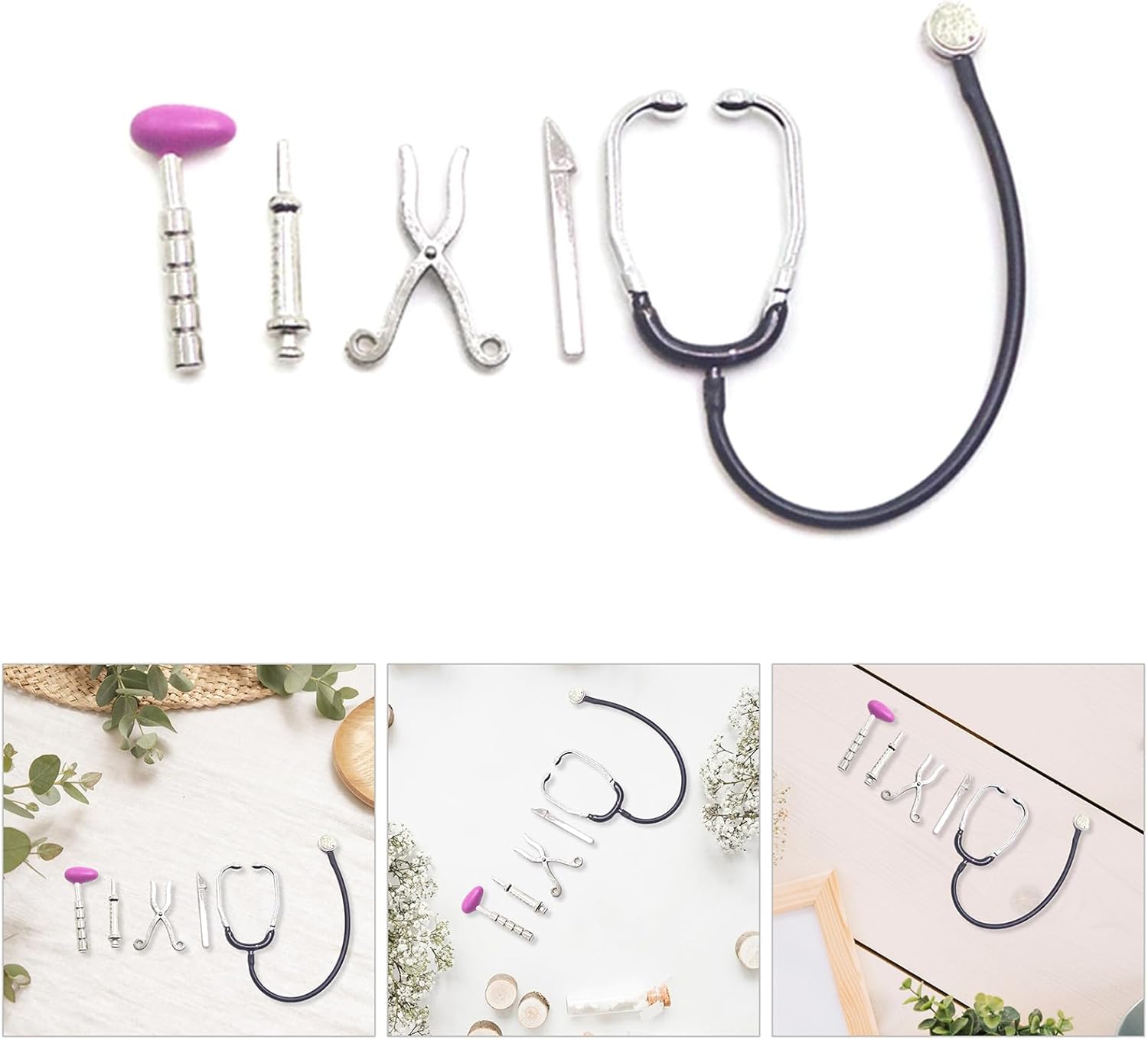 Ideale per i genitori che cercano un giocattolo educativo per giochi di ruolo, questi accessori adatti ai 3 anni coinvolgono in modo sicuro i bambini in scenari creativi sotto supervisione Migliora le tue case delle bambole in scala 1/12 con questo set di 5 attrezzi in miniatura, con uno stetoscopio e accessori per l'allattamento artigianali in lega per giochi di finzione dettagliati Per narrazione fantasiosa aggiungendo vibrazioni cliniche ai mondi in miniatura, adatto per la maggior parte dei set di mobili per bambole in scala 1/12 per la costruzione di scene Perfettamente dimensionati per case delle bambole standard, questi strumenti trasformano la scena dell'ospedale delle bambole, i diorami della clinica o i display in miniatura con autenticità sanitaria professionale Ogni pezzo mette in mostra l'artigianato, combinando dettagli e autentiche repliche in scala di strumenti reali per una decorazione coinvolgente delle case delle bambole