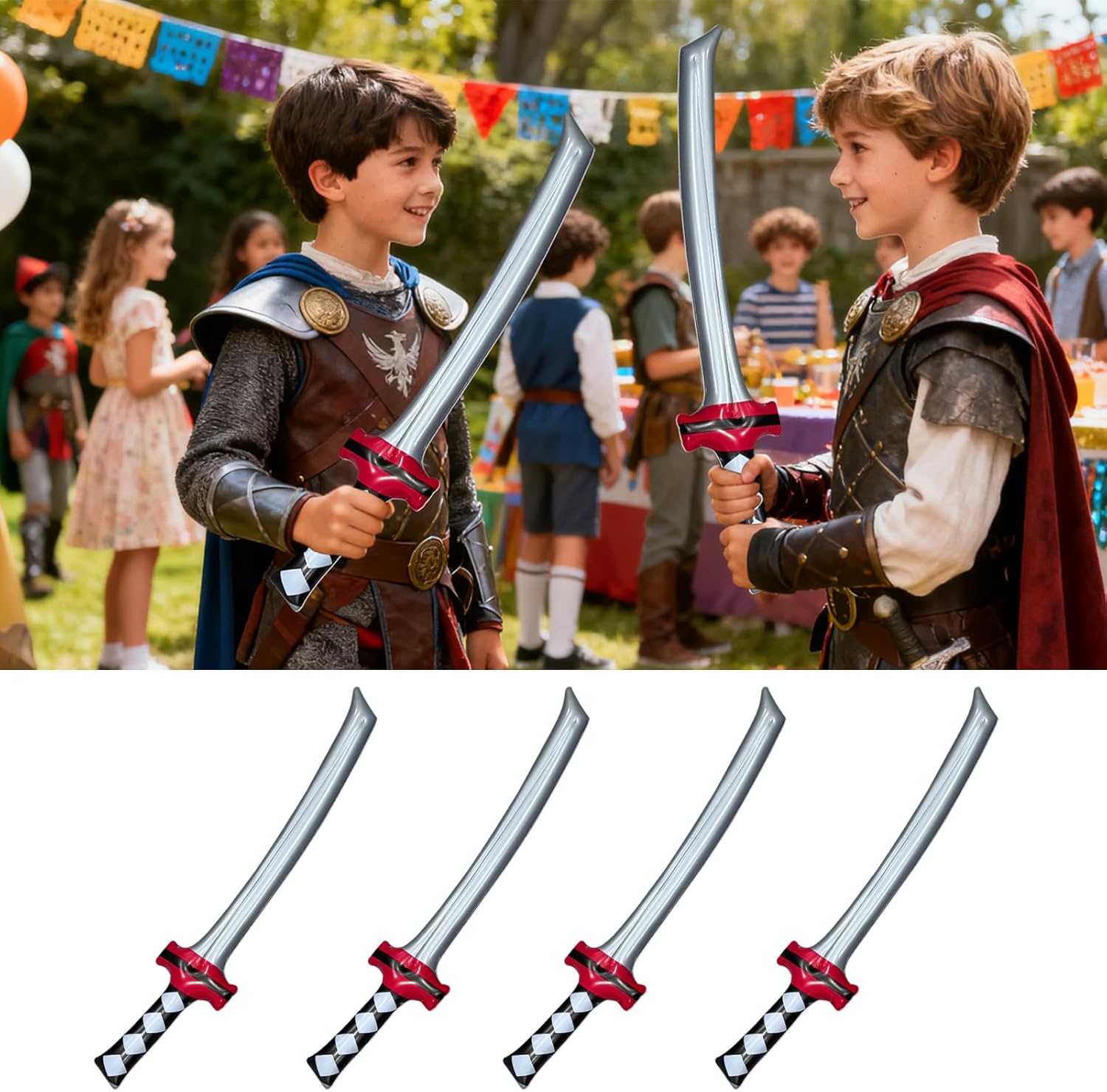 Pronto all'uso e pratico: questi oggetti di scena per costumi di Halloween dispongono di una funzione di gonfiaggio e svuotamento rapido, che offre prestazioni affidabili e facilità d'uso. Migliorano istantaneamente l'atmosfera durante le feste, gli eventi scolastici o le feste di quartiere trick or treat e sono ideali per eventi spontanei, convincendo la loro facilità d'uso e pronti per l'uso in qualsiasi momento. Bordi sicuri per i bambini: questi accessori per costume sono dotati di bordi morbidi arrotondati e sono realizzati con materiali a prova di bambino, garantendo un comfort di gioco duraturo con l'uso attivo durante feste o eventi. I bordi morbidi e i materiali delicati riducono al minimo i rischi e garantiscono un'esperienza di gioco sicura che consente ai bambini di muoversi e giocare liberamente senza alcun disagio. Effetto visivo dinamico: i props di Halloween con design audaci e accattivanti aggiungono un'atmosfera vivace alle tue celebrazioni e ti assicureranno che risaltino in qualsiasi ambiente. L'aspetto dinamico aumenta l'atmosfera festosa durante feste o eventi e attira l'attenzione degli ospiti. Questi elementi eye-catching creano una presentazione indimenticabile che trasforma interni ed esterni. I design vivaci si integrano perfettamente con varie decorazioni e Accattivanti accessori di scena: gli oggetti di scena per cosplay anime facilitano il gioco di ruolo creativo durante le feste e le esibizioni sul palcoscenico e offrono adattabilità a più eventi. Arricchiscono l"esperienza complessiva attraverso opportunità coinvolgenti su misura per varie celebrazioni o attività basate sull"apparizione. Questi oggetti di scena supportano l'intrattenimento interattivo e l'uso versatile in ambienti dinamici. Soluzione di condivisione multipezzo: progettati come un insieme di quattro parti, questi prop per cosplay consentono agli utenti di risparmiare denaro acquistando oggetti e creare momenti coinvolgenti attraverso il lavoro di squadra e lo storytelling condiviso. In occasione di eventi come Comic Cons o celebrazioni a tema, il set promuove la collaborazione e le narrazioni condivise, rendendolo una soluzione pratica per i gruppi che vogliono condividere le loro esperienze di cosplay e aumentare la creatività nella comunità.