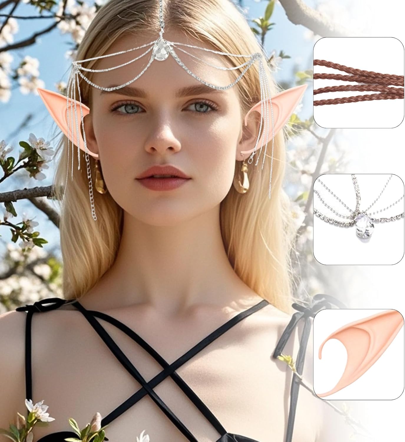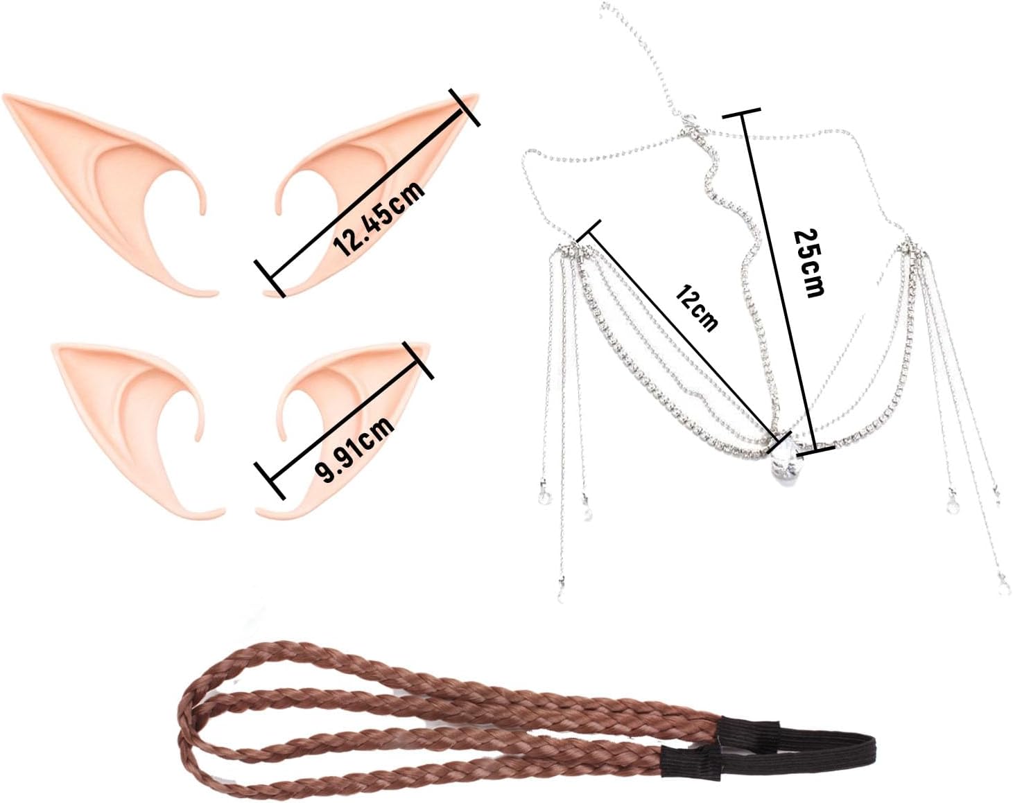 Materiale: le orecchie da elfo sono realizzate in silicone confortevole e delicato sulla pelle, quindi sono comode da indossare; il ciondolo per sopracciglia di cristallo è realizzato con strass di alta qualità, trasparenti e lucidi; la fascia per capelli per parrucca è realizzata in fibra sintetica morbida e resistente, quindi è più comodo da indossare sulla fronte. Dimensioni: include orecchie da folletto lunghe e corte, accessori per capelli con ciondolo per sopracciglia in cristallo e fasce per capelli intrecciate per creare un look folletto carino e bello per la tua festa Mardi Gras e vari eventi a tema. Design dell'aspetto: la consistenza e il colore dell'orecchio da elfo sono naturali e realistici, il ciondolo di cristallo è finemente lucidato e intagliato, cristallino, con linee morbide per mostrare la splendida texture che mostra l'incomparabile bellezza dello squisito. Il fiocco di capelli treccia ritorto è strettamente intrecciato, e ogni dettaglio mostra l'alta qualità. Tipo di utilizzo: possono essere indossati con una varietà di acconciature e si adattano a diverse personalità e occasioni. Le orecchie Pixie sono disponibili in lunghezze corte e lunghe per una varietà di stili, il ciondolo a forma di sopracciglia di cristallo si adatta a tutte le acconciature e gli abiti e la treccia intrecciata aggiunge un tocco dolce o giocoso. Più applicazioni: adatto per carnevale, Halloween, feste cosplay, convention anime e molte altre occasioni, è un ottimo accessorio per mostrare la tua personalità e il tuo fascino.