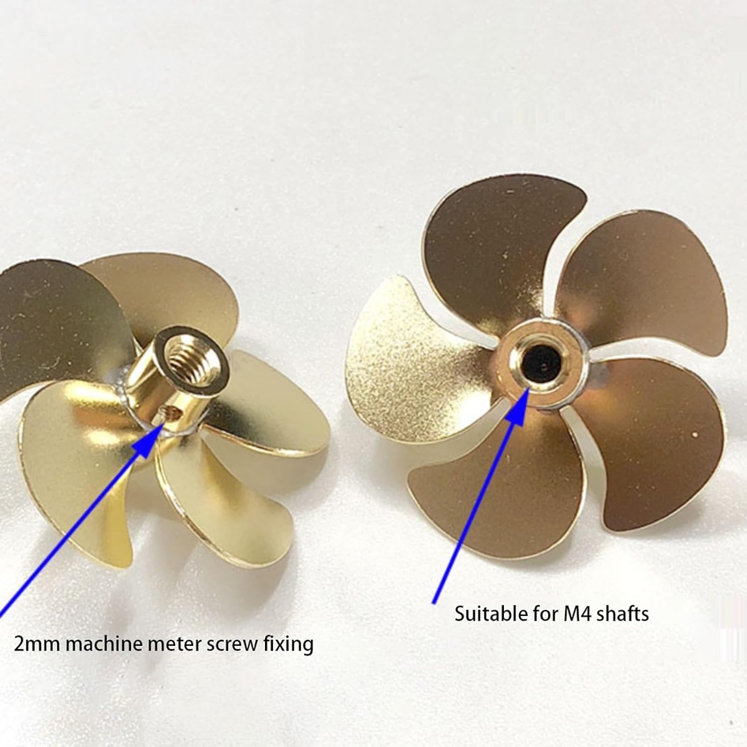 Set di eliche in ottone di alta qualità progettate for modelli di navi RC, che garantiscono durata e aspetto realistico. La coppia di eliche da 33 mm (CW e CCW) garantisce una spinta bilanciata e un funzionamento regolare. La costruzione saldata con precisione in stagno garantisce integrità strutturale e prestazioni affidabili. Compatibilità con albero M4 con fissaggio sicuro tramite vite di regolazione mediante chiave esagonale da 0,9 mm. Ideale for migliorare il realismo, la propulsione e la manovrabilità dei modelli di navi.