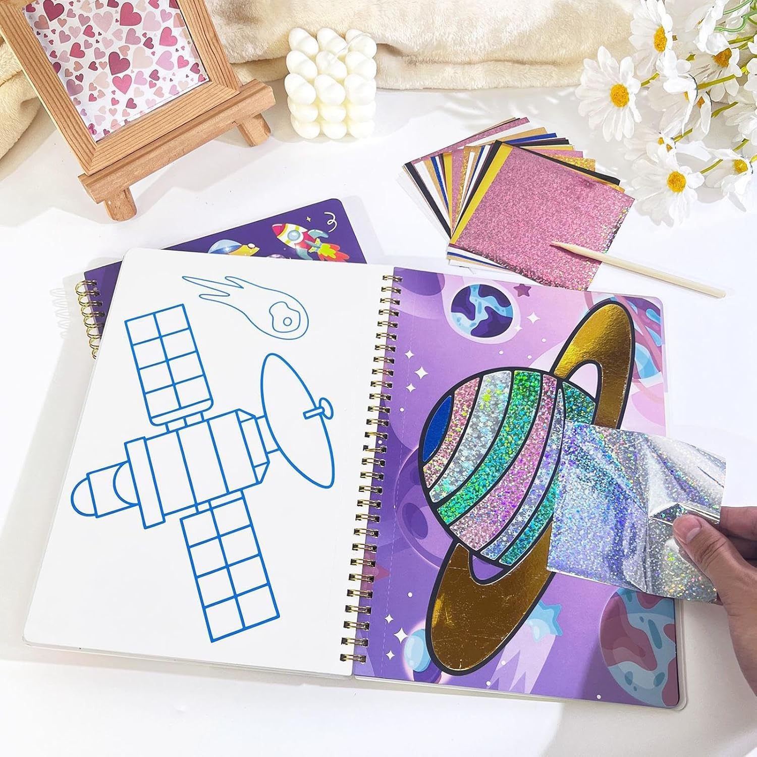 Ampia impiegabilità: perfetto per laboratori educativi, campi vacanze e giorni familiari. Combina elementi educativi con un valore di intrattenimento per i 6 anni. Adatto per uso individuale e attività di gruppo, promuove lo sviluppo del motore e la percezione del colore. Scene creative: Sperimenta con pacchetti tematici che includono diversi mondi di storia. Combina un film scintillante con motivi animati per portare visivamente viaggi spaziali, feste e avventure emozionanti. Terminazione facile e divertente: esperienza fai da te di crepe, stampa e sollevamento con il pacchetto di artigianato in alluminio pel-and-press, che garantisce un processo pulito e pratico mentre fanno splendide opere d'arte brillanti in modo piacevole e affascinante Creative Gift: questo pacchetto di artigianato in alluminio è un regalo significativo per compleanni, vacanze, Natale e Capodanno. Ti permette di mostrare amore e cura attraverso il piacere artistico per i ragazzi, le ragazze e gli altri. Adatto per il trattamento creativo e come regalo festivo. Brillante avventura artigianale: questo pacchetto di artigianato in alluminico incoraggia il riconoscimento dei colori e la creatività mentre li apprezzano il gioco pratico in cui producono belle opere d'arte brillanti che danno un senso di soddisfazione soddisfacente e affinano efficacemente le loro capacità motorie