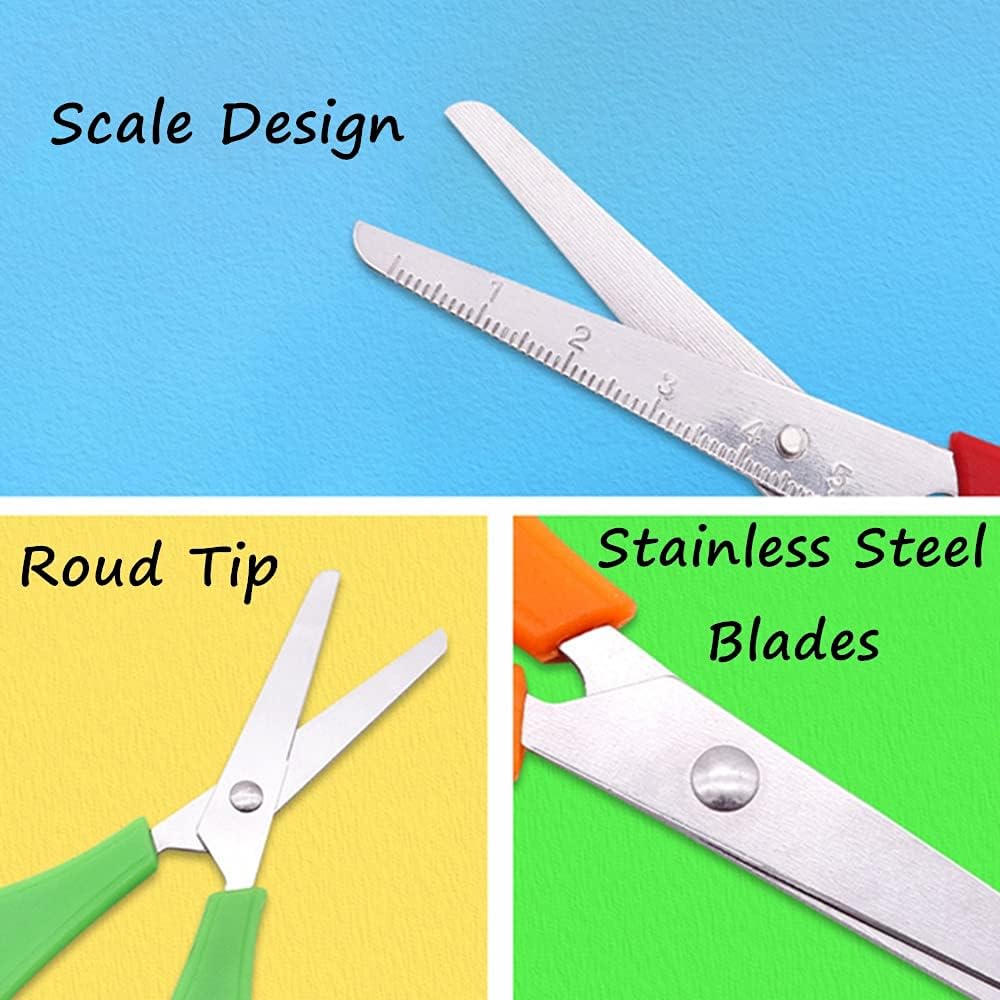 Contenuto della confezione: 12 forbici di sicurezza per bambini in colori casuali, quantità sufficiente per soddisfare l'uso quotidiano. Ideale per lavori con la carta, progetti artistici Alta qualità: le forbici di sicurezza per bambini sono realizzate in plastica PP e acciaio inossidabile con una punta rotonda, che non danneggerà la mano dei bambini Design scalato: ogni paio di forbici è dotato di una scala di 5 cm, che aiuta i bambini a tagliare la carta con precisione, strumento super utile per i bambini Comodo da tenere: leggero, doppio anello per dita, comodo da impugnare, adatto sia per la mano destra che per quella sinistra Ampiamente usato: ideale per progetti artistici e uso quotidiano, può essere utilizzato per tagliare carta, cartoline o album di ritagli, album fotografici, libri di ricordi, regali tag, ecc.