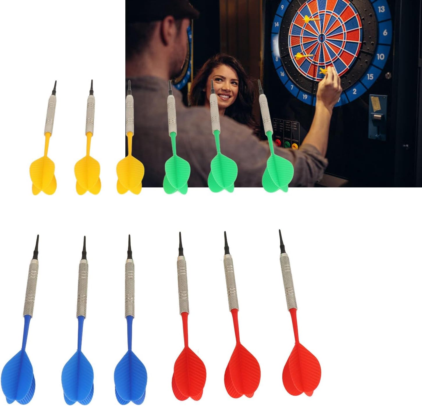 [Design sicuro e resistente] Realizzati in plastica flessibile di alta qualità, queste freccette a punta morbida offrono la massima sicurezza durante il gioco. Le punte molli appositamente progettate impediscono danni superficiali e lesioni accidentali, rendendoli perfetti per le competizioni adatte alle famiglie. La loro costruzione leggera ma robusta garantisce prestazioni durature mantenendo un'eccellente precisione di lancio. [ per i principianti] Questo set di dardi completo è ideale per i nuovi arrivati per padroneggiare la loro tecnica di lancio. La distribuzione del peso equilibrata e l'impugnatura ergonomica consentono una gestione confortevole e una migliore accuratezza. Che tu stia praticando da solo o hosting Game Nights, queste freccette offrono la perfetta introduzione all'entusiasmante mondo dei giochi Dart. [Team Play Ready] Con quattro colori vibranti (rosso, blu, verde e giallo), questo set consente di emozionanti tornei di squadra con un massimo di quattro giocatori. I colori distinti aiutano i giocatori a identificare facilmente le loro freccette durante le partite competitive. Trasforma la tua sala giochi in un' professionale e sfida gli amici a battaglie di dardo indimenticabili. [Pacchetto valore completo] Ottieni tutto ciò di cui hai bisogno in un pacchetto: 12 freccette premium soft-tip e 100 punte di sostituzione. La generosa fornitura garantisce il gameplay ininterrotto ed elimina le frequenti corse di negozi per le sostituzioni. per feste, bar o utilizzo domestico, questo set garantisce infinite ore di intrattenimento che lanciano freccette. [Versatile Entertainment] Progettato per vari contesti tra cui portici, pub e sale di gioco domestiche, queste freccette di livello professionale elevano qualsiasi raduno sociale. La loro compatibilità universale con le dartboard elettroniche e di plastica li rende la scelta perfetta per i giocatori casuali e gli appassionati seri. Crea momenti memorabili con questo set di dardi per tutti gli usi.