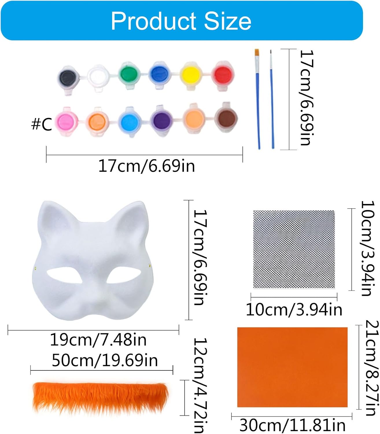 Caratteristiche: Sia che tu stia partecipando a una festa di Halloween o semplicemente vuoi essere popolare ai festival, questo gatto è l'opzione. Adatto per bambini e bambini, questo animale è buono per gli appassionati di anime. Si distingue dalla massa con queste volpi dipinte a mano, un oggetto unico e accattivante che sicuramente attirerà la testa. Il cosplay di Halloween è adatto per Halloween in varie occasioni di Halloween. È una grande opportunità per usare la tua immaginazione per progettare il tuo, potrebbero essere applicati come base per creare altri animali. Specifiche tecniche: Componente: polpa, panno. Dimensioni: come da immagine. Tipo: Sei tipi facoltativi Nota: Considerare un margine di errore di 1-3 cm dovuto alla misurazione manuale. A causa delle differenze tra i diversi monitor, l'immagine potrebbe non rispecchiare il colore reale dell'articolo. La confezione include: 2 tipi Pacchetto facoltativo come segue: Pacchetto 1: 1 set di volpi Confezione 2: 12 pigmenti colorati con 2 pennelli.