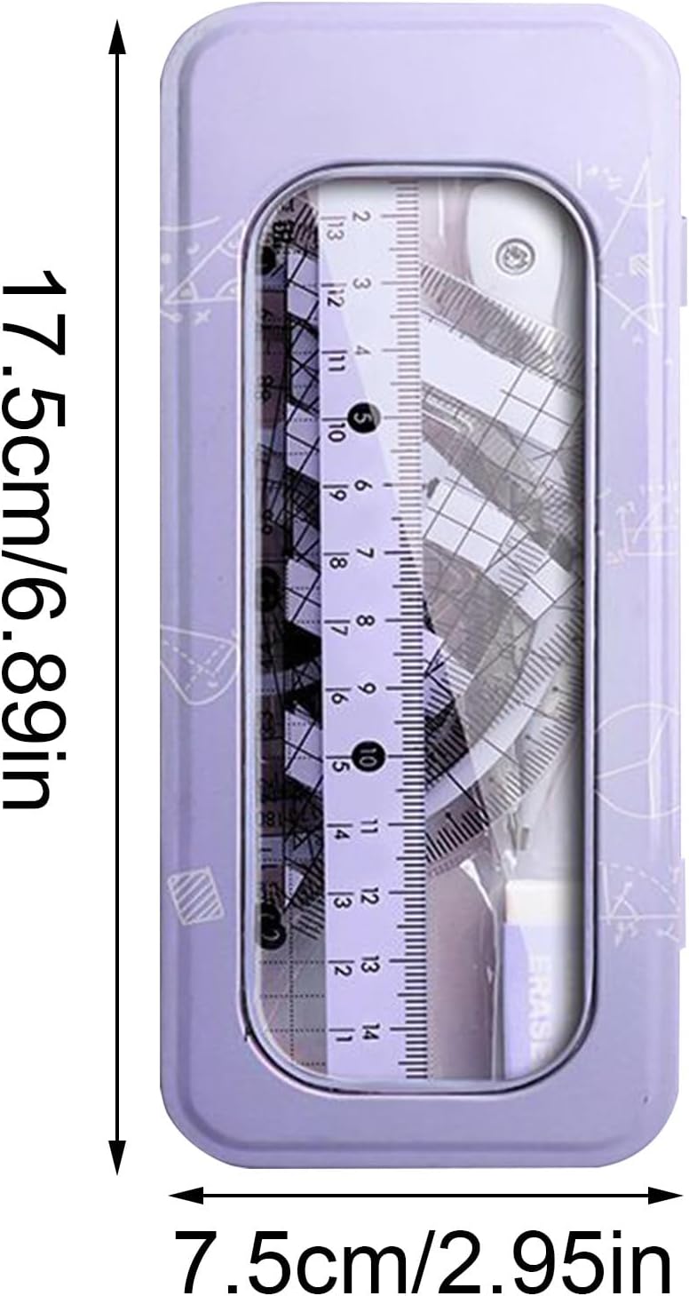 Attrezzatura Essenziale: Il set di geometria con compasso e goniometro offre misurazioni esatte grazie alle scale dettagliate, supportando progetti scolastici e compiti a casa per risultati di apprendimento efficienti Set completo cancelleria: Il set geometria offre una collezione di articoli di cancelleria ben organizzata che soddisfa le esigenze degli studenti; la fusione di praticità e design contemporaneo lo rende adatto all'uso quotidiano, garantendo che sia un eccellente regalo per il rientro a scuola per giovani studenti alle prese con compiti di geometria Gestione sicura : Progettato per la funzionalità, il kit di geometria presenta un layout organizzativo con sezioni separate che ospitano un set di 8 strumenti, assicurando che gli rimangano integri e non vengano smarriti in zaini o cassetti, offrendo tranquillità ad artisti e ingegneri durante lavori di precisione Design Creativo Giovanile: Il set di geometria mostra motivi geometrici accattivanti abbinati a un tema bicromo trasparente, ottenendo un effetto colorazione fashion che stimola l'interesse degli adolescenti durante lo studio. Strumento didattico a basso riflesso: La presenza di scale a contrasto attenuato e superfici opache minimizza i riflessi, garantendo massima chiarezza d'uso durante compiti di matematica o progetti tecnici mentre favorisce l'apprendimento concentrato