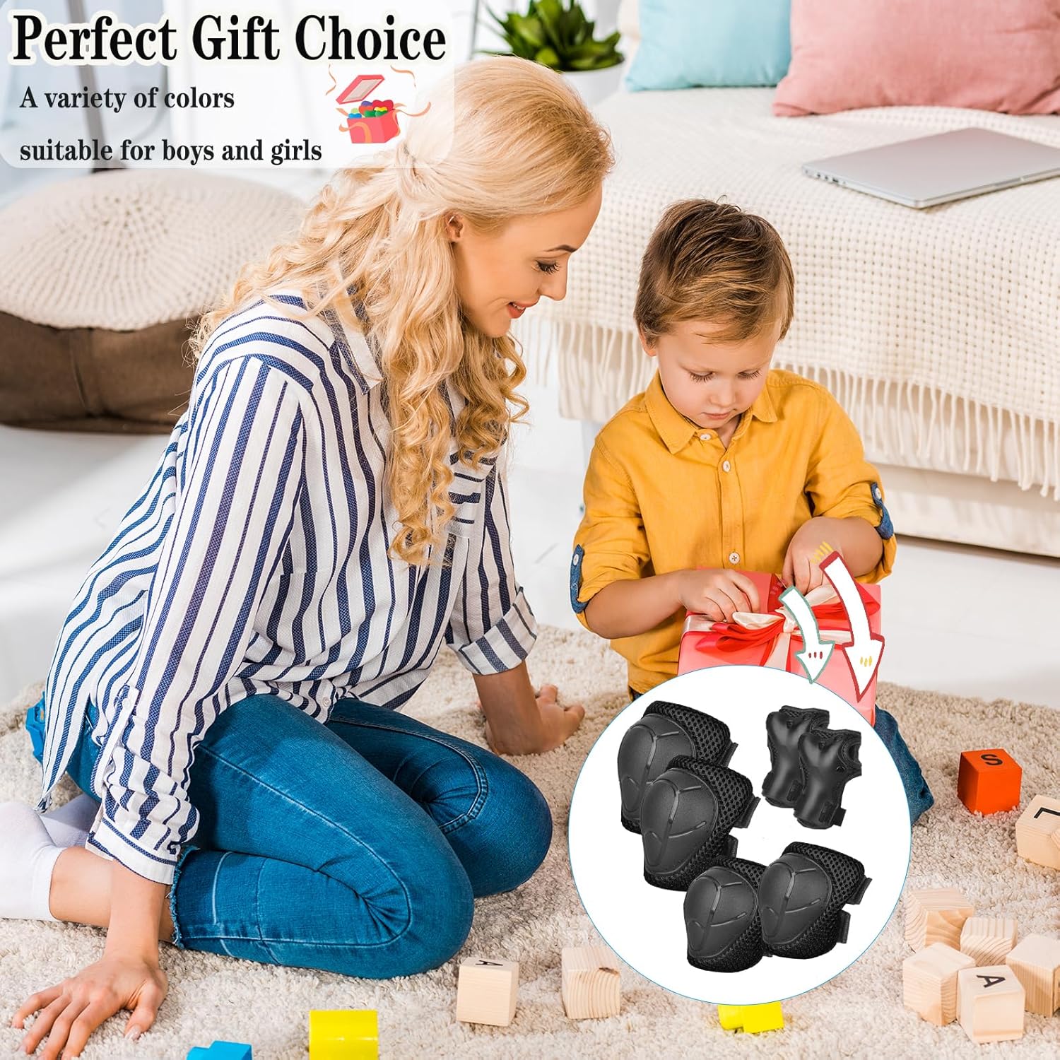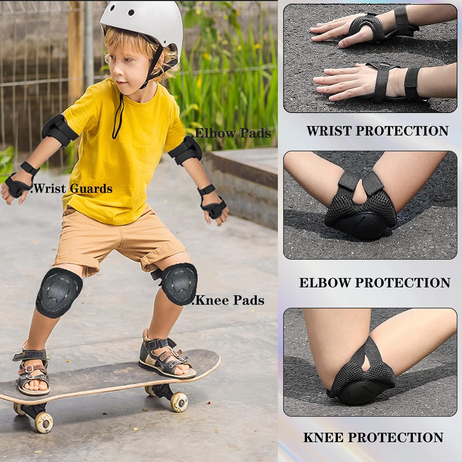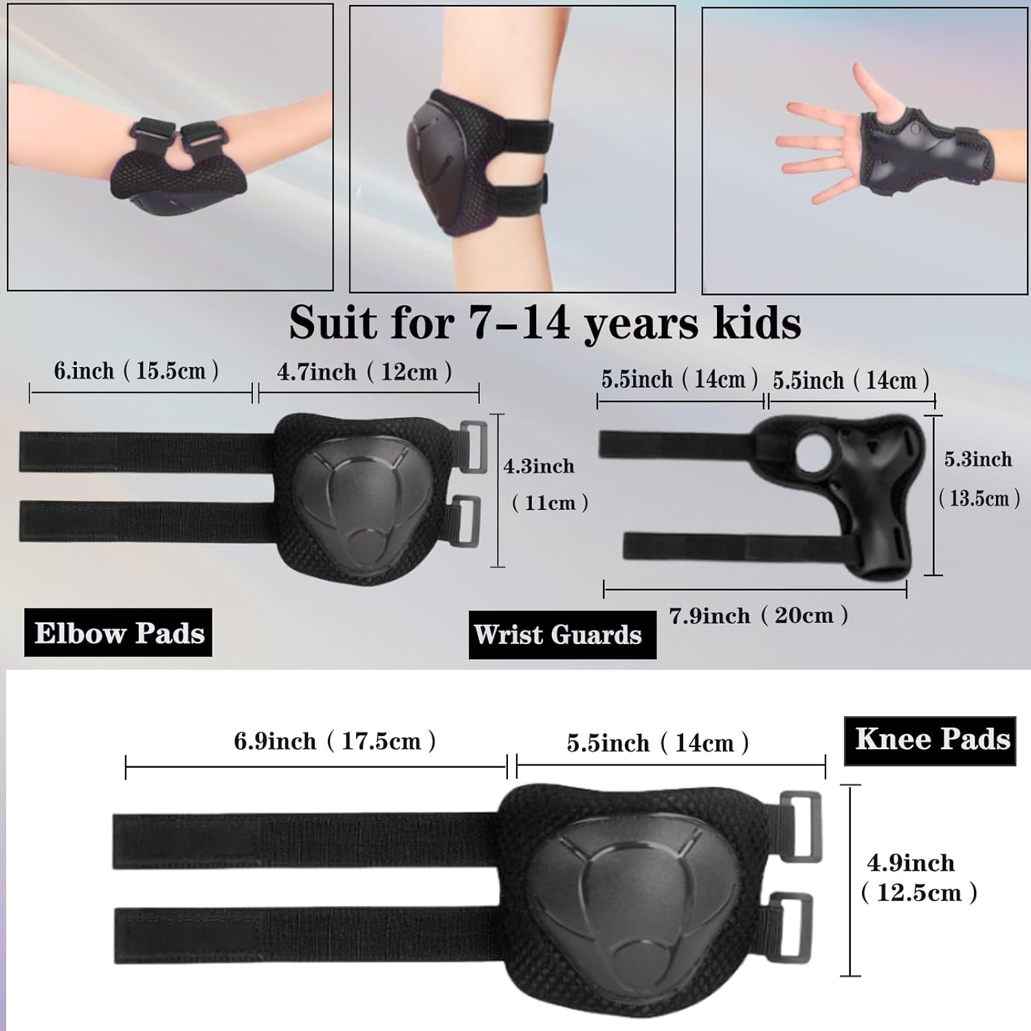 Set di ginocchiere e gomitiere per bambini/ragazzi con protezione per il polso 3 in 1 Set di attrezzi protettivi per bambini da 3 a 11 anni