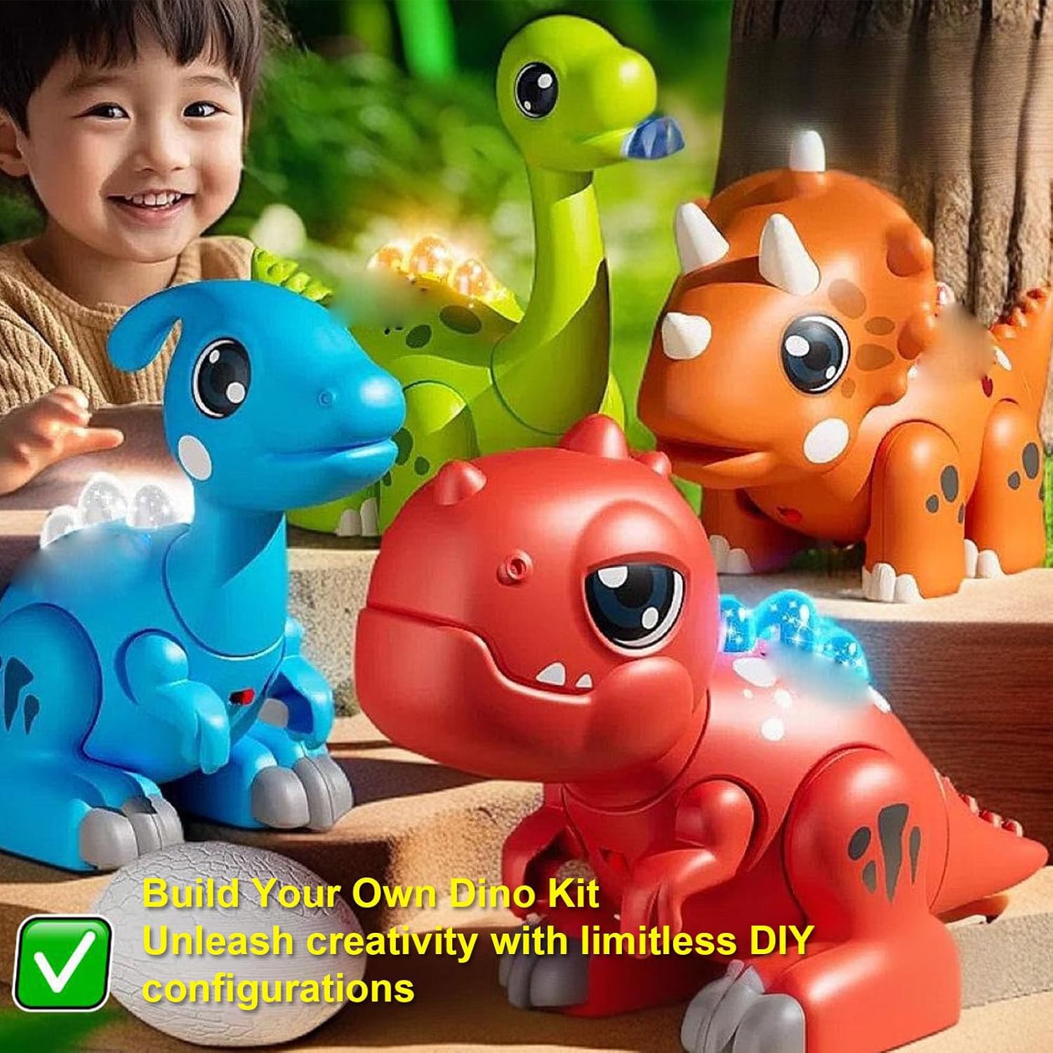 GIOCATTOLO DINOSAURO MAGNETICO: questo modello di dinosauro fai-da-te è dotato di innovativi connettori magnetici per un assemblaggio semplice, che consente ai bambini dai 3 anni in su di unire le parti senza attrezzi. I giunti magnetici sicuri garantiscono stabilità durante il gioco consentendo al tempo stesso un facile smontaggio per un divertimento ripetuto. MODELLO EDUCATIVO DI BRACHIOSAURO: Progettata con accuratezza scientifica, questa replica di brachiosauro insegna ai bambini le creature preistoriche attraverso la costruzione pratica. Le proporzioni realistiche suscitano curiosità per la paleontologia, migliorando al tempo stesso il ragionamento spaziale e le capacità motorie. GIOCATTOLO LUMINOSO: le luci a LED integrate illuminano i dinosauri assemblati con morbidi effetti multicolori, creando affascinanti spettacoli notturni. La luce ambientale trasforma il tempo di gioco in un'avventura preistorica coinvolgente. KIT DI COSTRUZIONE SICURO: Costruito con materiali ABS+PET con bordi lucidi e magneti saldamente racchiusi, questo set di costruzione soddisfa rigorosi standard di sicurezza. Il design robusto resiste a frequenti assemblaggi senza usura per un valore educativo duraturo. STRUMENTO DI APPRENDIMENTO STAMINALE: essendo un giocattolo educativo approvato da STEAM, questo kit di dinosauri sviluppa capacità di risoluzione dei problemi attraverso la costruzione modulare. I bambini esplorano la biomeccanica creando pose dinamiche, favorendo la creatività insieme alla comprensione scientifica.