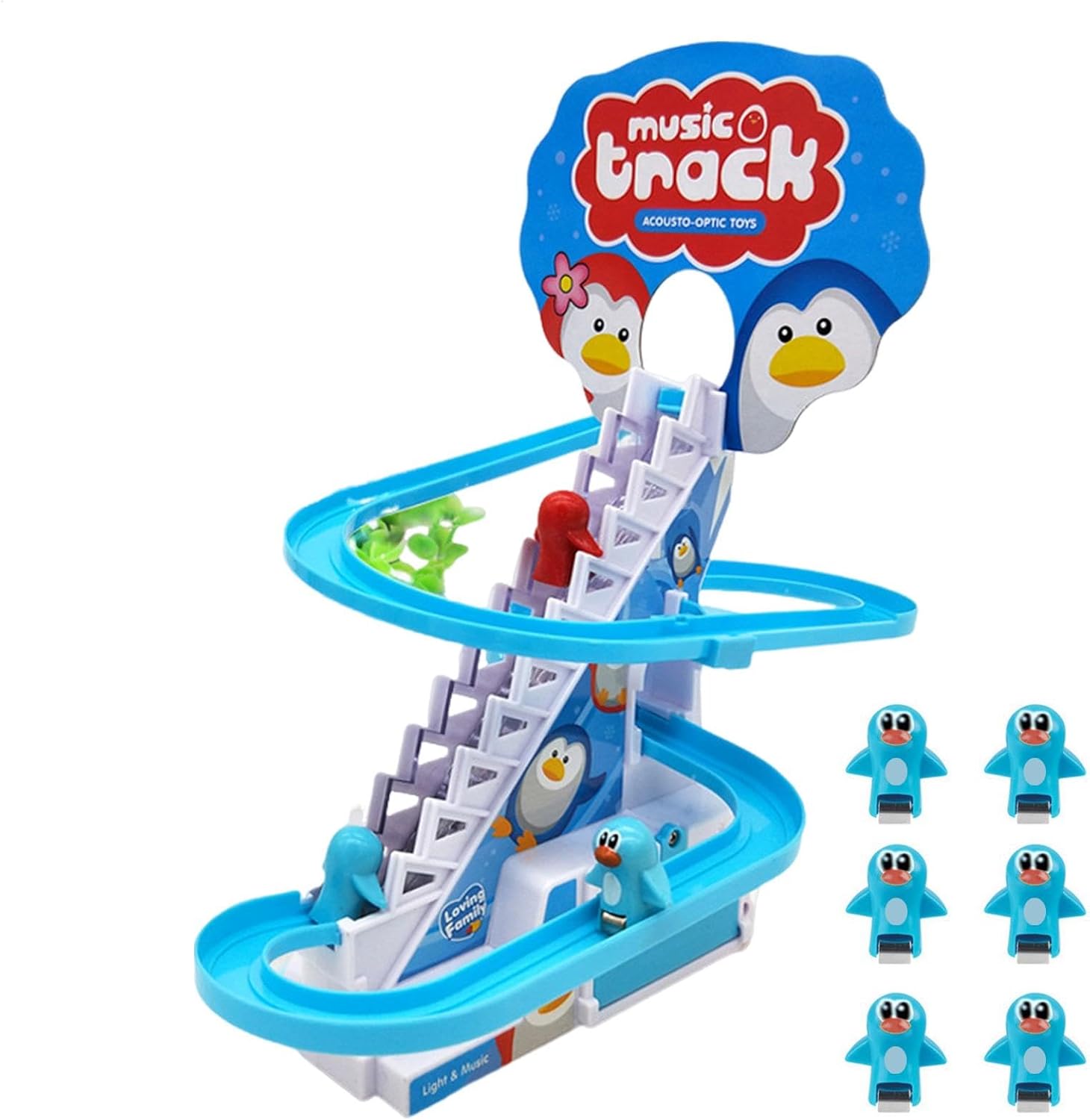 Dimensioni compatte: i sei adorabili pinguini su questa pista da arrampicata salgono continuamente le scale grazie al loro design unico. Le sue dimensioni compatte offrono ore di divertimento e intrattenimento, rendendolo un giocattolo perfetto per i bambini piccoli. Assemblaggio Educativo: Migliora le tue capacità di problem solving mentre i bambini si divertono usando le mani e la mente, migliorando la loro consapevolezza visuo-spaziale e promuovendo lo sviluppo cognitivo. Sicuro e robusto: consenti al tuo bambino di divertirsi di più con la pista da arrampicata Penguin Stairs, realizzata in robusto materiale ABS che lo rende robusto, a prova di caduta e resistente all'usura. Ampia gamma di usi: offri ai bambini un'esperienza emozionante con la pista da arrampicata Penguin Stairs, ideale per il rientro a scuola e i compleanni. Questo giocattolo è un ottimo modo per intrattenere i bambini mentre imparano e si esercitano e un regalo indimenticabile che li terrà occupati e attivi. Perfetto anche per Halloween e Natale. Eccitazione senza rivali: aggiungi più divertimento con luci e musica mentre i pupazzi di scivolano lungo la pista tortuosa, catturando l'attenzione dei bambini e tenendoli occupati.